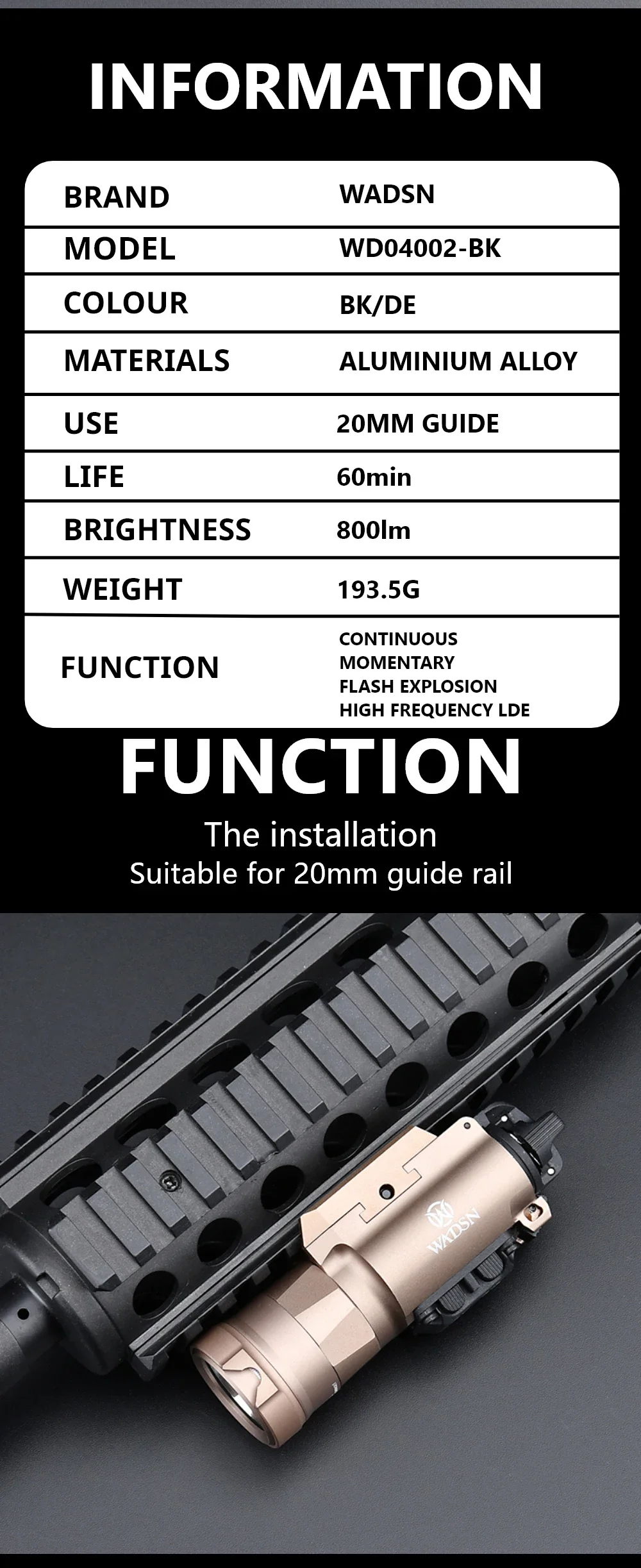 WADSN-linterna LED estroboscópica de Ultra alta potencia, táctica, Airsoft, Surefie XH35 X300, 800lm, compatible con riel de 20mm, luz de caza
