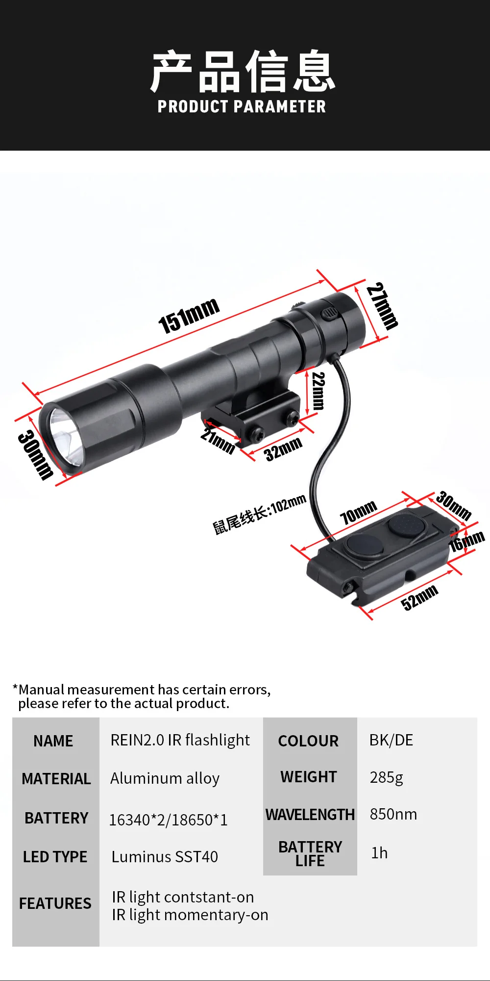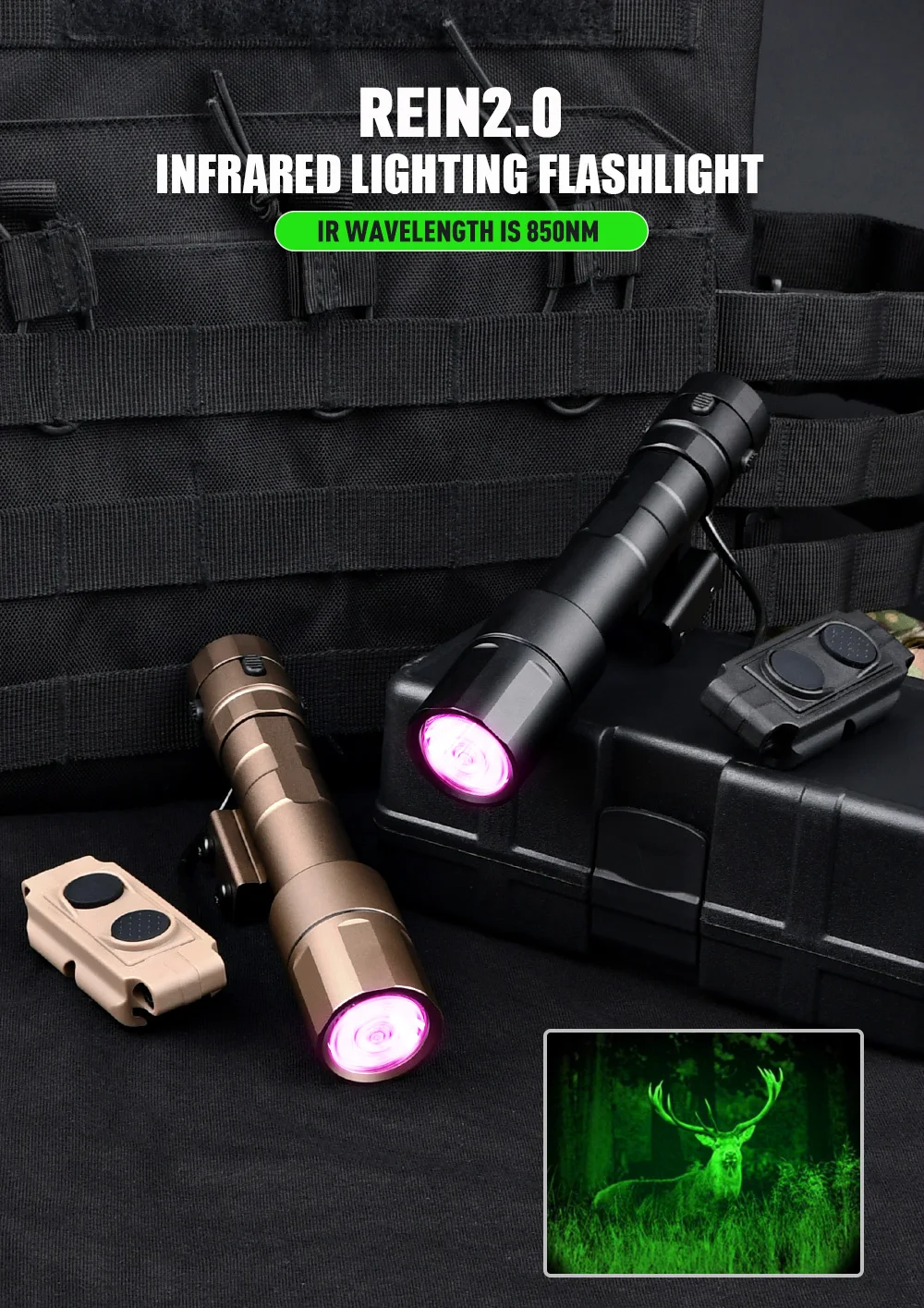 Wadsn-linterna Led táctica de Metal con interruptor de doble función, riel Picatinny, Airsoft, luz para arma de caza, 2,0 IR, 20mm
