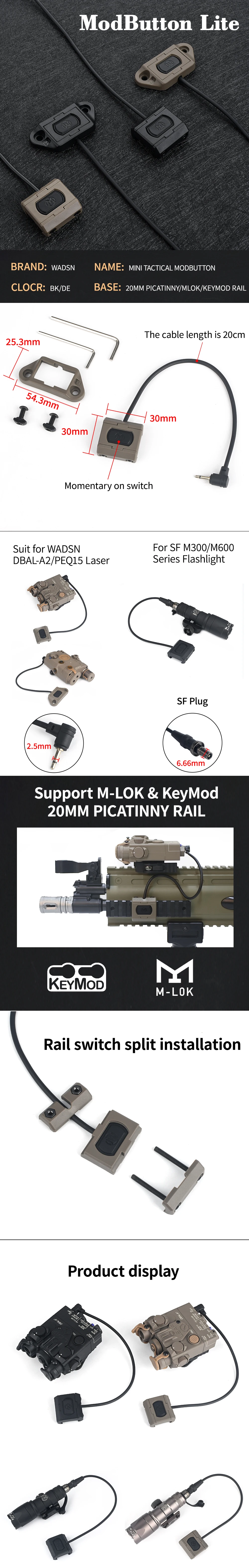 WADSN-linterna M300 M600, puntero láser PEQ DBAL, Modbutton táctico, interruptor de presión remoto, compatible con M-LOK Keymod, riel Picatinny de 20mm