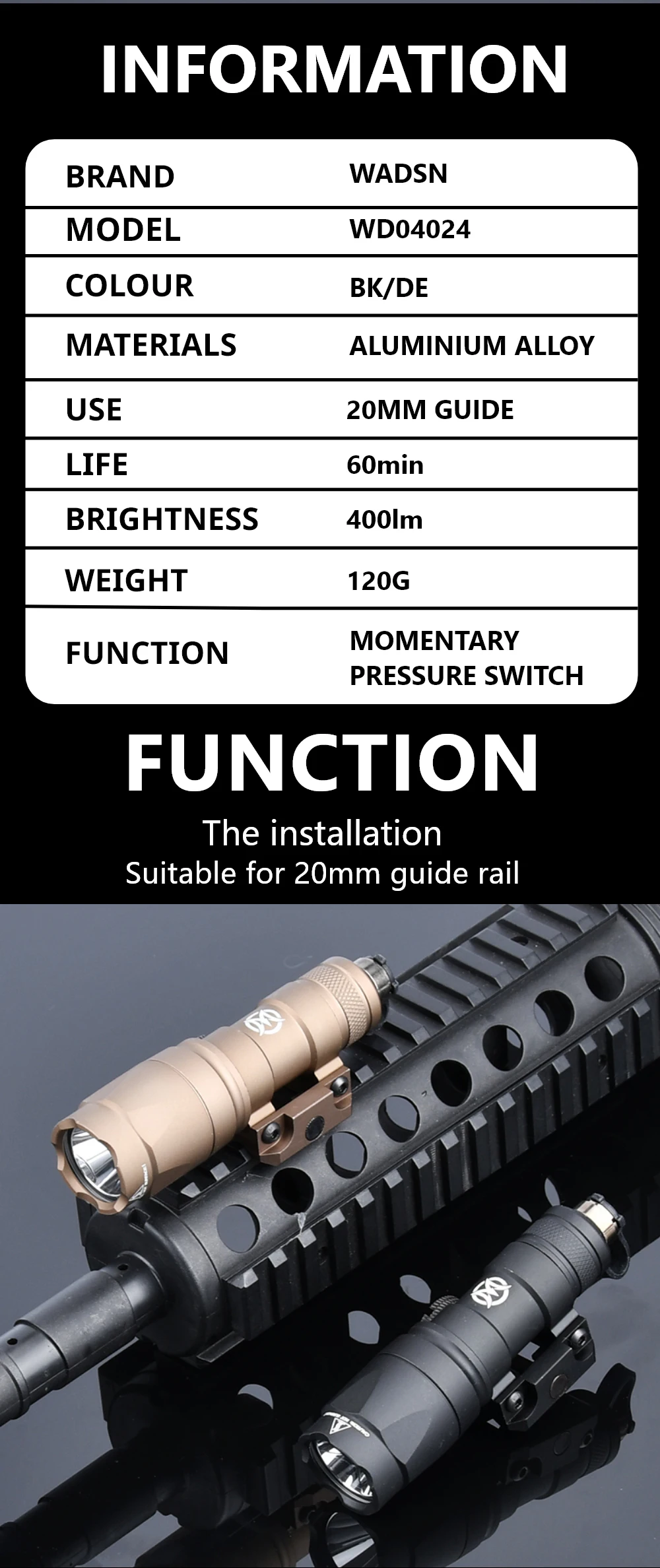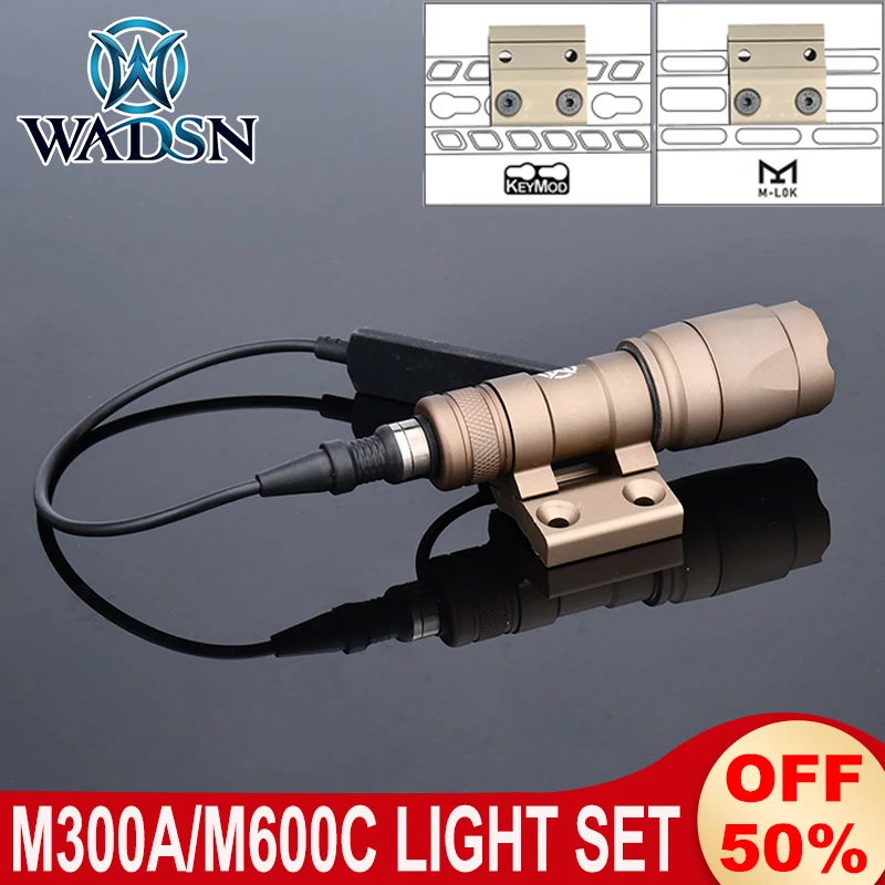 Juego de linternas Wadsn M300A, lámpara de explorador M600C, luz de arma de caza, Base de montaje de Metal táctica defensiva, compatible con Mlok Keymod