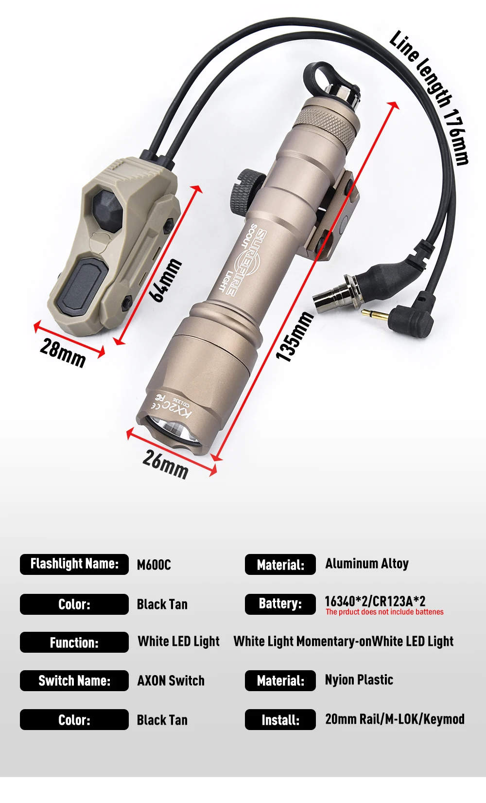 WADSN-linterna M600 M600C AXON, interruptor Dual, enchufe 2,5/SF, caza táctica SF Surefir, luz exploradora, equipo Airsoft apto para riel de 20mm