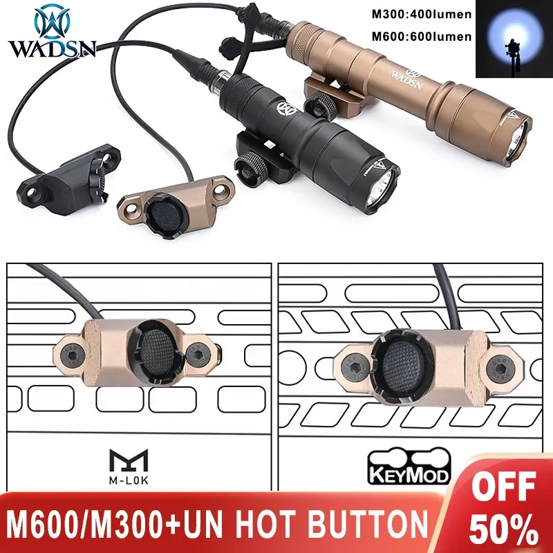 WADSN-linterna M600C M300 para caza, luz de explorador táctico con interruptor de presión de un solo botón, Mlok Keymod, Rail Airsoft