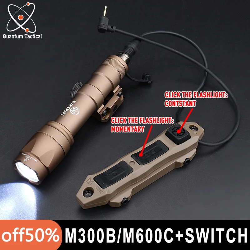 Wadsn linterna M600C M300B, luz táctica de exploración de caza Airsoft con interruptor de presión remota de doble función, encendido constante/momentáneo