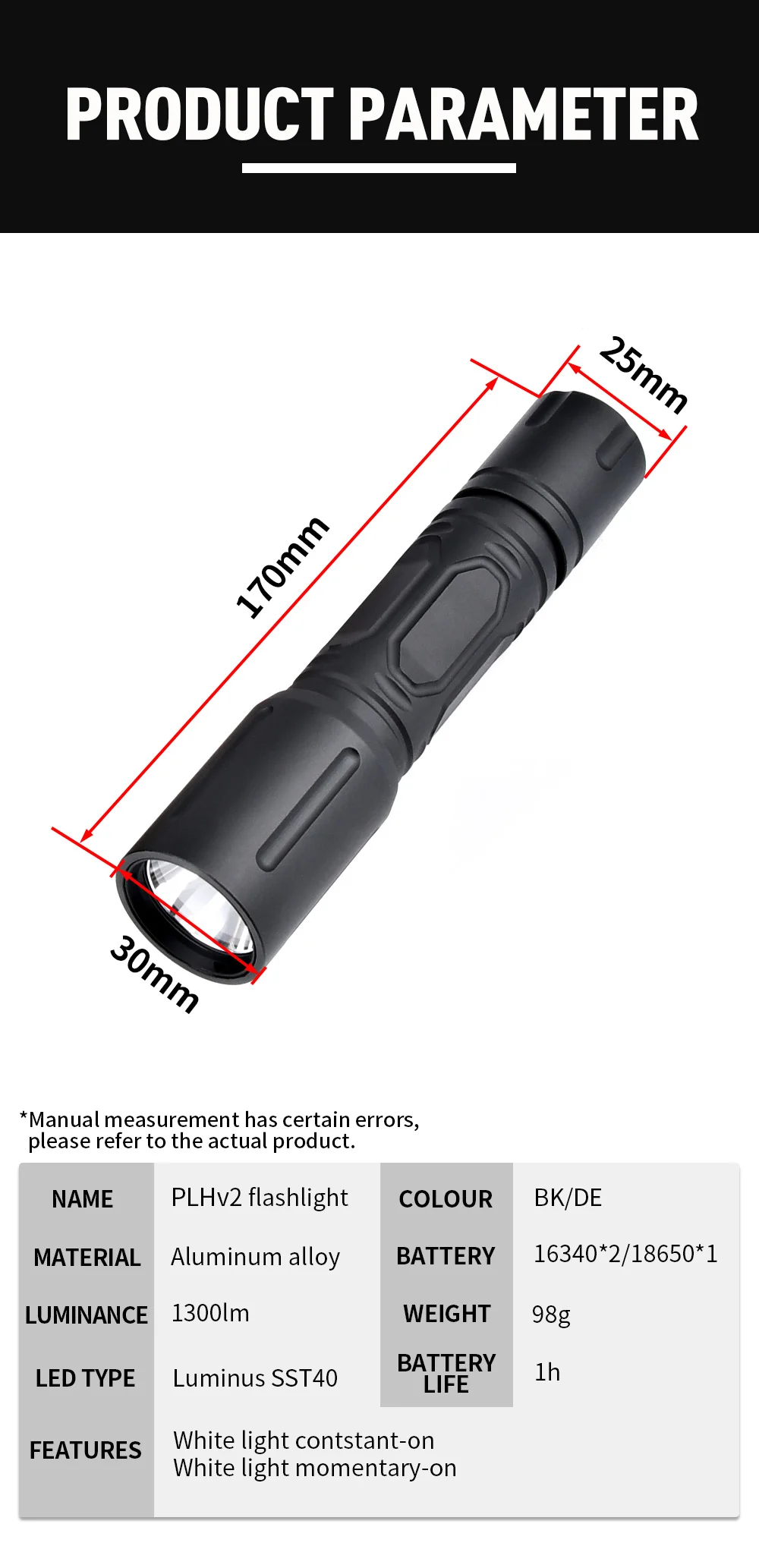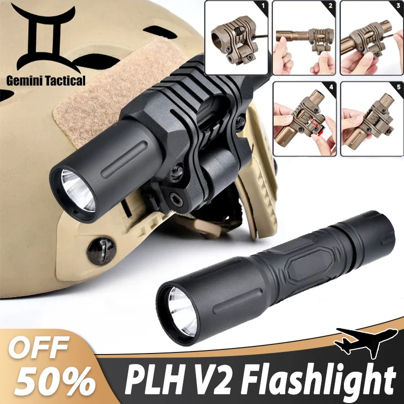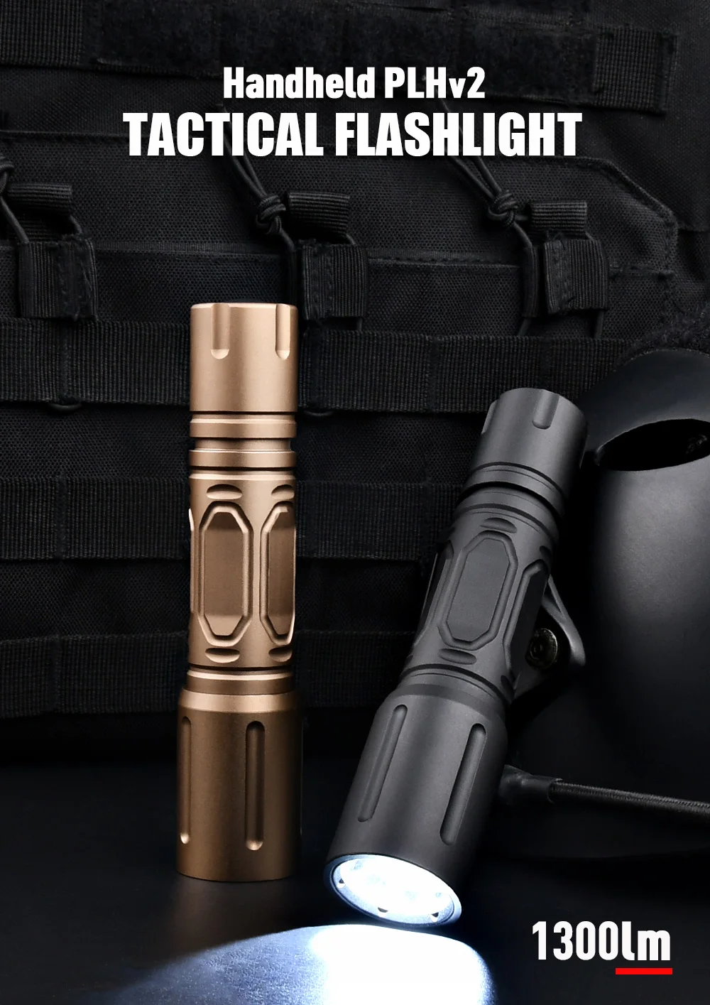 Tactical Metal Wadsn PLH V2 Handheld Flashlight 1300Lumen Hunting Airsoft Weapon Scout Light With Torch Clip Fit FAST Helmet