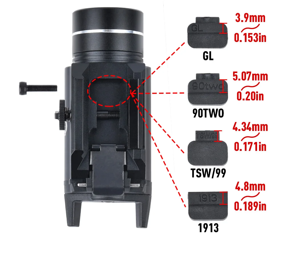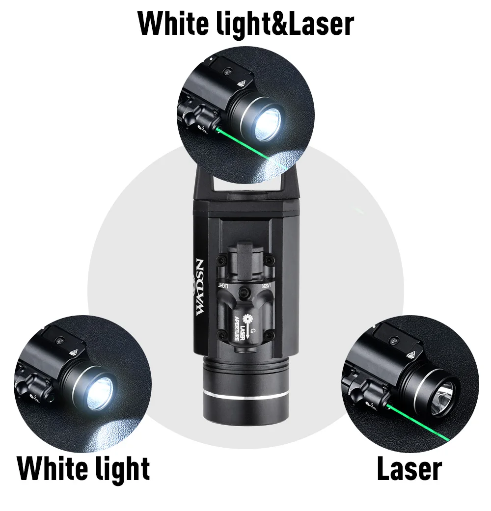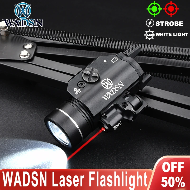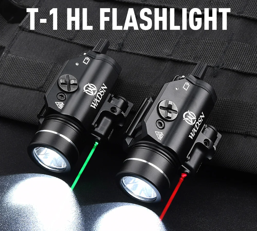 WADSN-linterna de Metal T-1HL con láser de punto rojo y verde, estroboscópica luz blanca, para caza, Airsoft, colgante para riel de 20MM