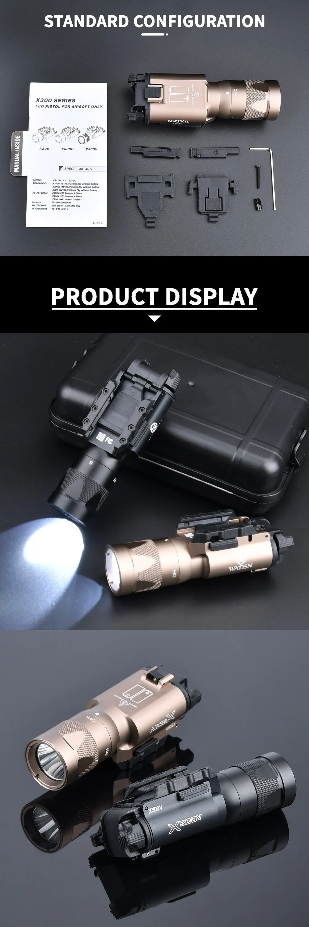WADSN-Linterna de pistola estroboscópica táctica militar X300V, linterna LED de caza al aire libre para 20mm