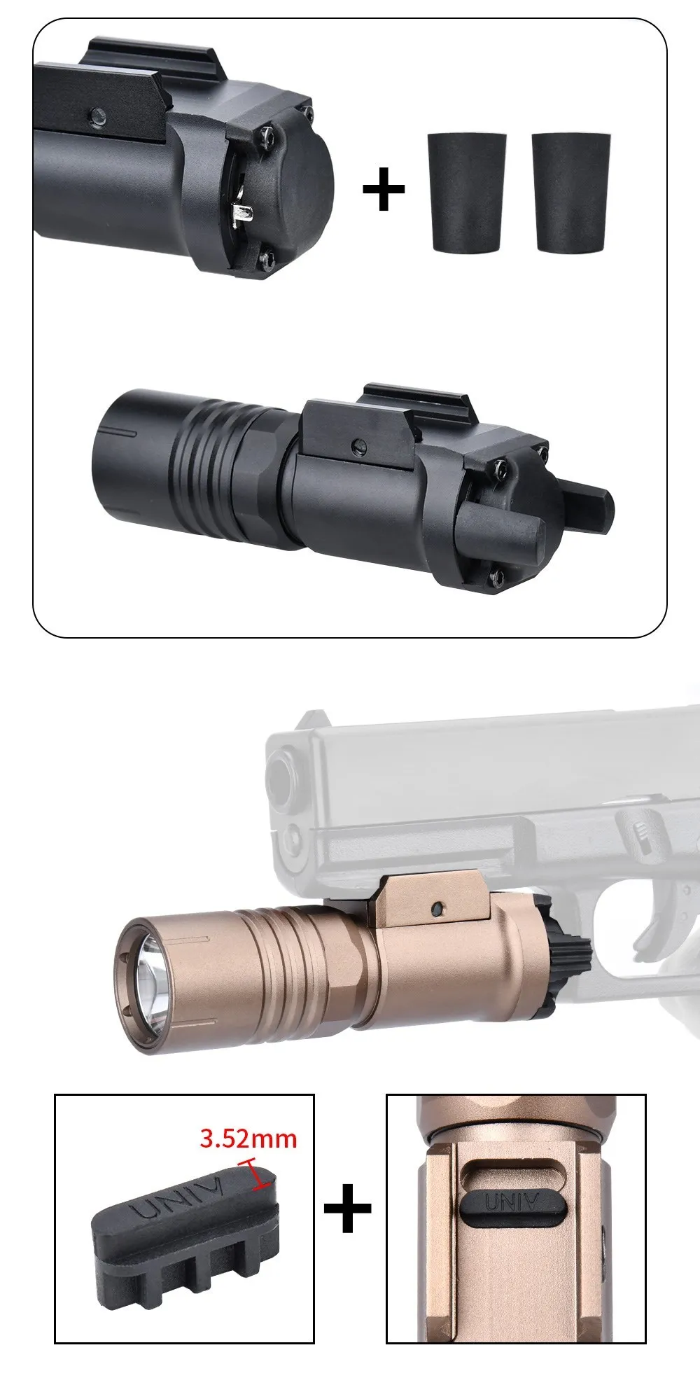 Linterna táctica WADSN de 1000 lúmenes para caza al aire libre, luz de exploración, foco de alta potencia para el pl350-plhv2, encendido constante