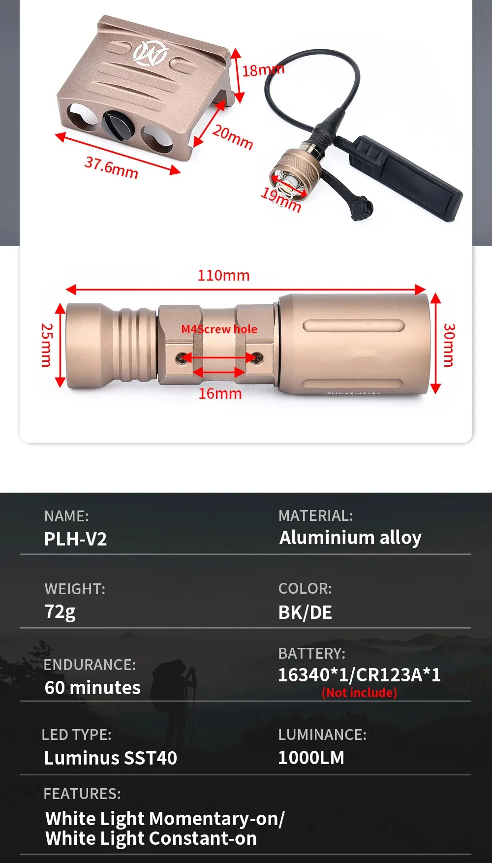 Wadsn-Linterna de 1000 lúmenes, luz brillante Plhv2, Airsoft táctico, foco de caza de alta potencia, Base de montaje, Riel de 20MM