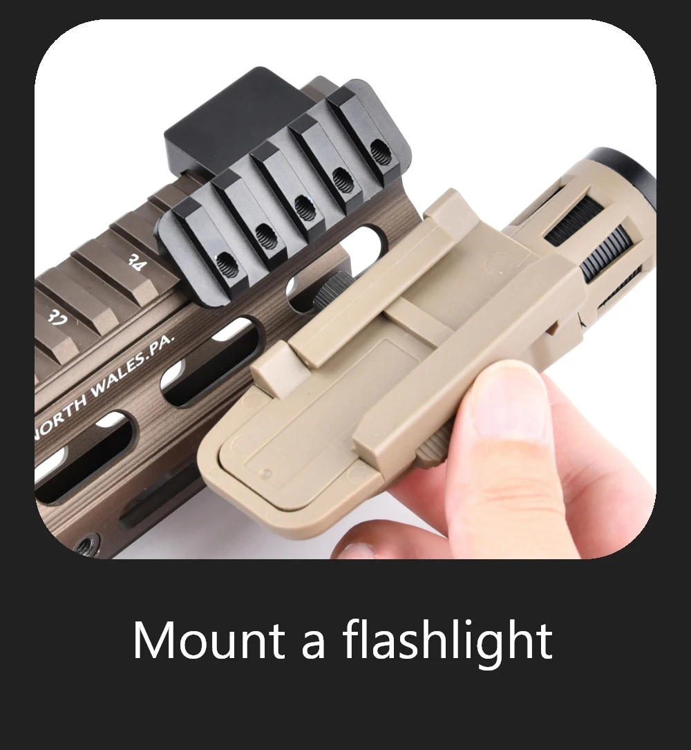 Este accesorio táctico para pistola de juguete airsoft proporciona una ventaja táctica al permitir una escritura rápida y eficiente de una linterna o luz de explorador.