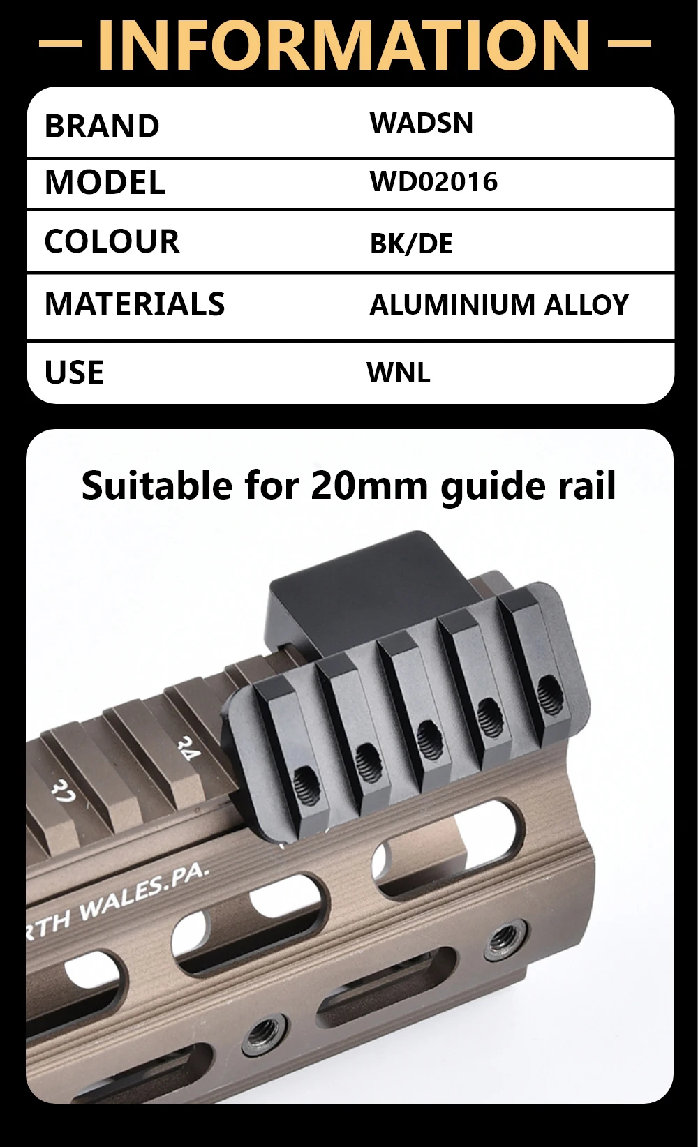 Elaborado con materiales duraderos, el WADSN Picatinny Thorntail2 de 20 mm garantiza longevidad y confiabilidad para sus necesidades tácticas.