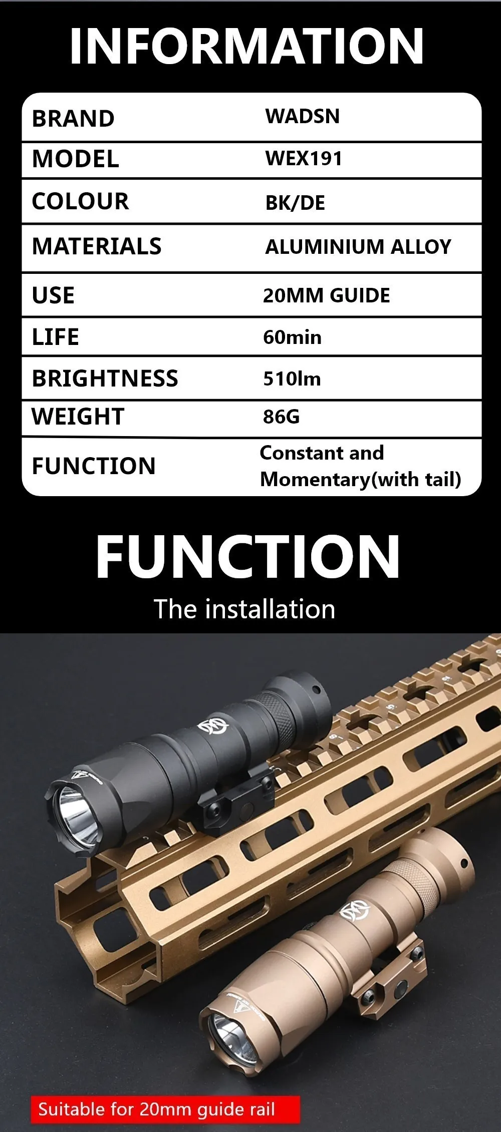 WADSN-linterna táctica Airsoft M300 M300A, pistola de caza, Arma de Rifle, Mini explorador, luz Led, ajuste de riel de 20mm con tapa trasera de interruptor