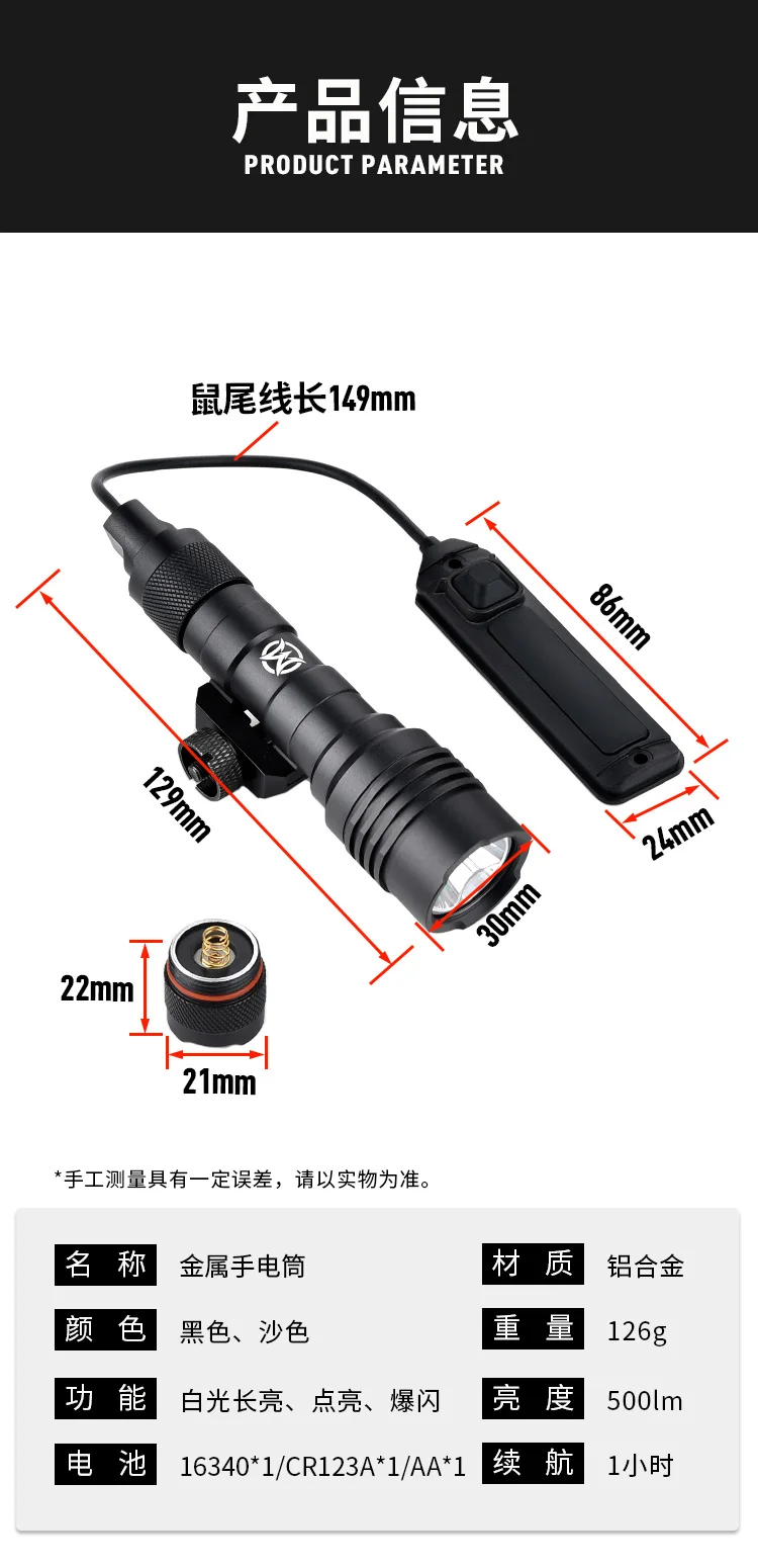 WADSN linterna táctica arma luz AR15 pistola de aire Rifle caza luz adecuada para riel de 20mm ScoutLight reflector al aire libre