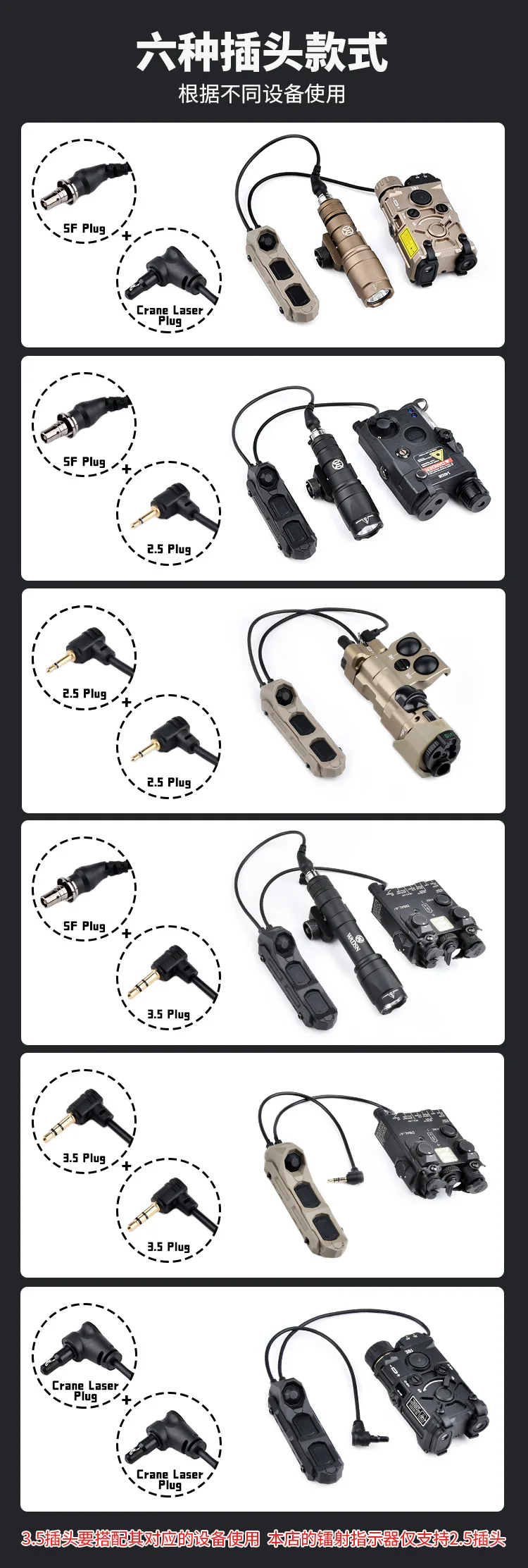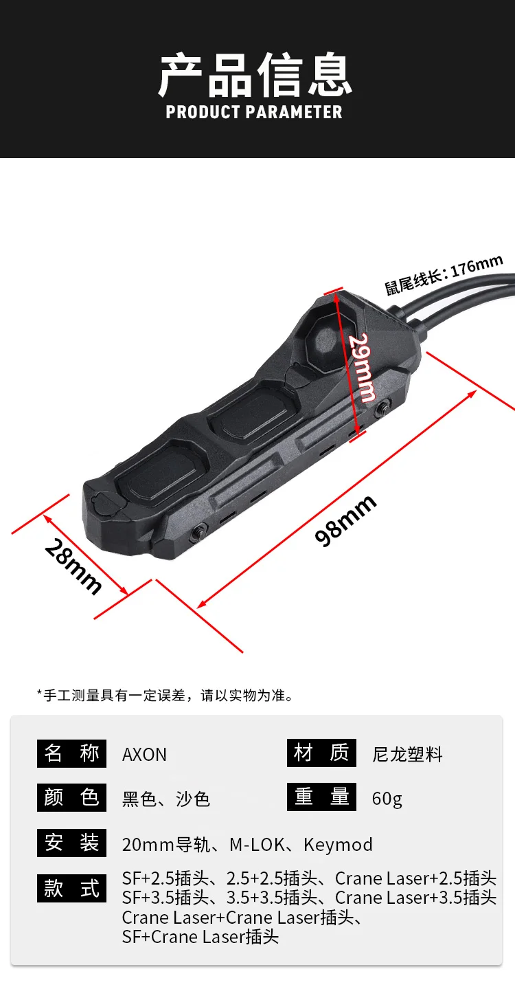 WADSN-linterna táctica AXON M300 M600, interruptor remoto de luz Scout SF/2,5mm/3,5mm/Crance, enchufe láser, compatible con M-LOK de riel de 20mm, Keymod