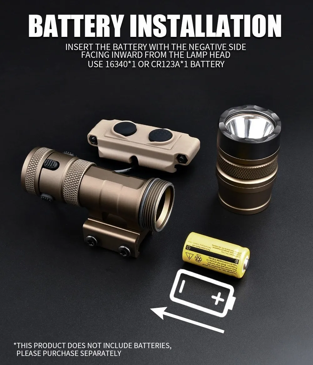 BATERÍA: corta-16340*1/CR123A * 1(no incluida), larga-16340*2/CR123A * 2(no incluida)