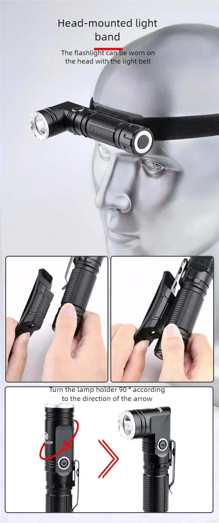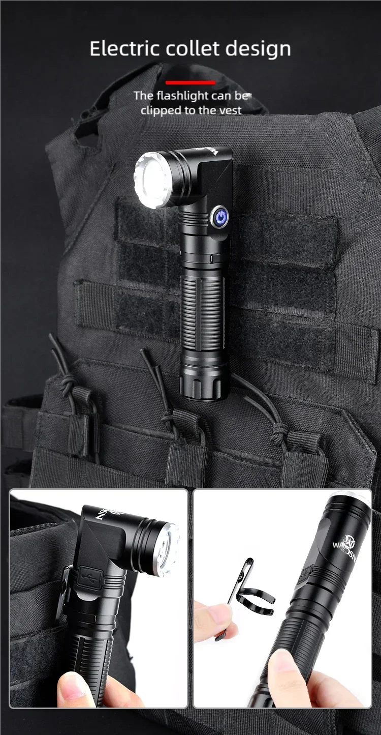 WADSN linterna táctica de esquina de Metal plegable, luz fuerte, LED suave, faro giratorio de 90 °, brillo ajustable