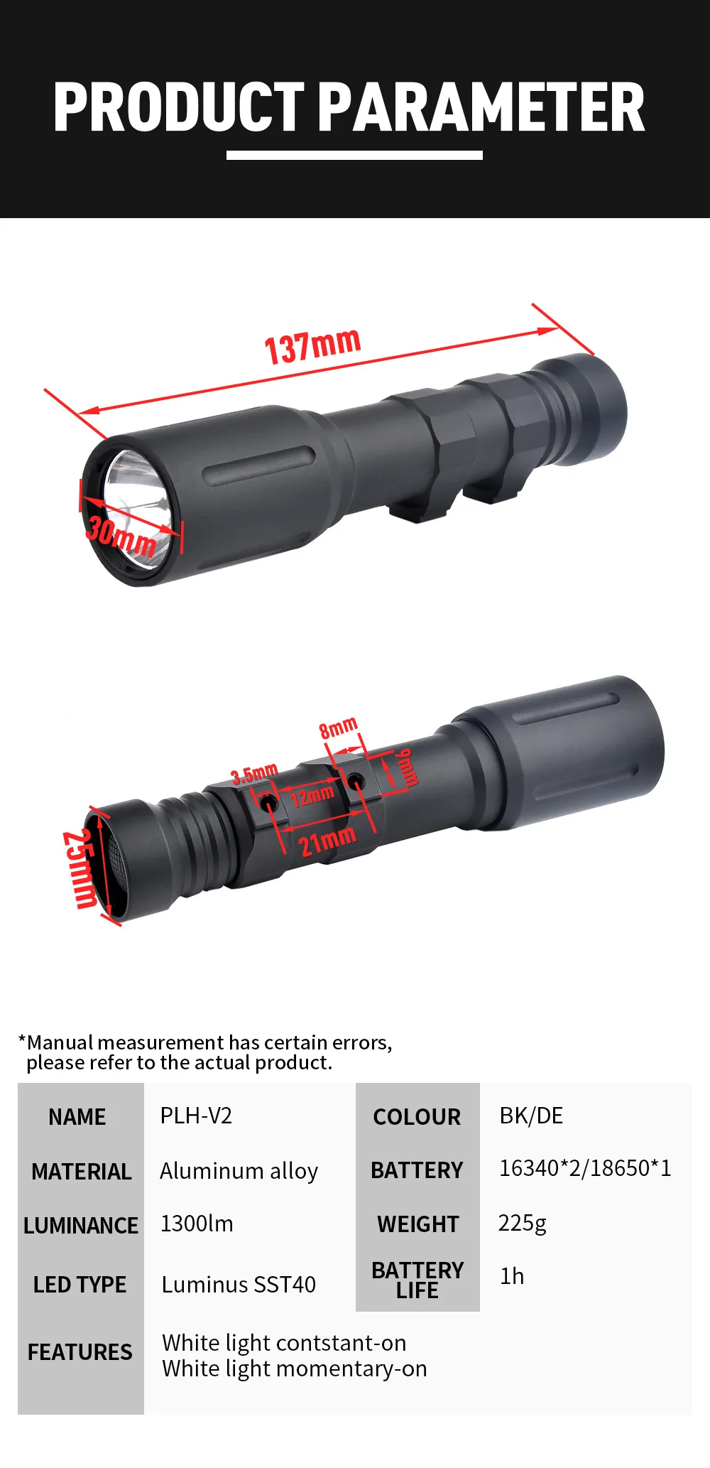 WADSN-linterna táctica Led de 1000 lúmenes, PLH-V2 de luz para arma de explorador, Airsoft Picatinny para riel, accesorios de Hunitng