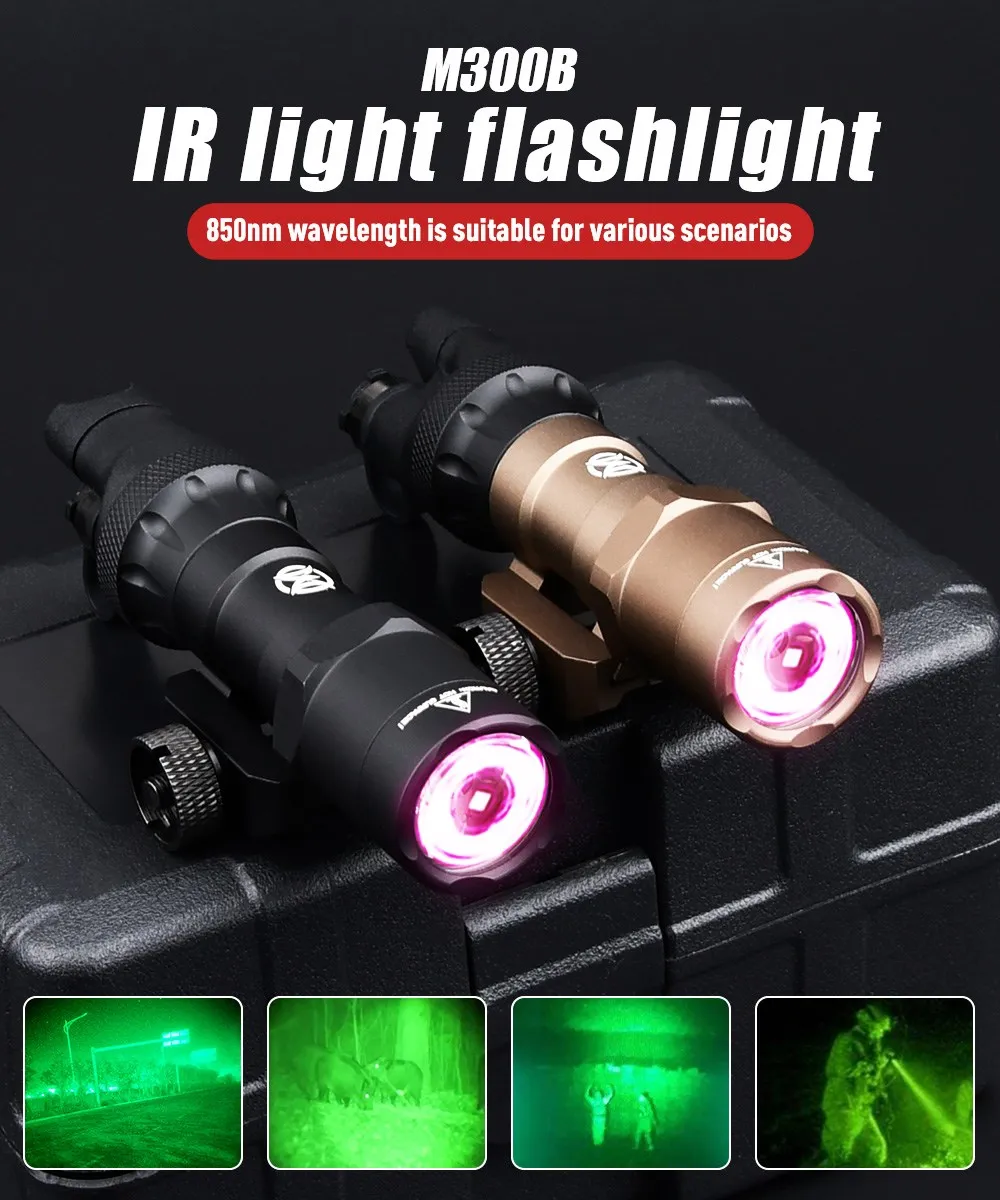 WADSN-linterna táctica M300 M300B, luz LED IR de explorador, accesorio para arma de caza, Airsoft, interruptor de presión compatible con riel Picatinny de 20mm