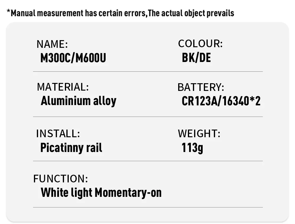 WADSN-linterna táctica M300 M600, luz de explorador de alta potencia, luz LED blanca M300C M600U, equipo de caza Airsoft apto para riel de 20mm