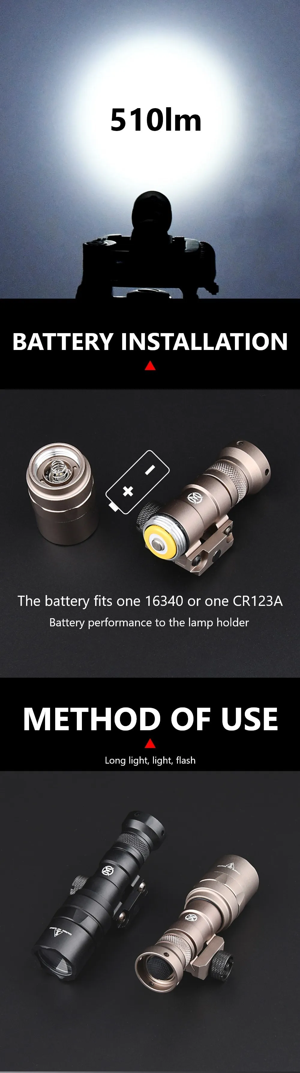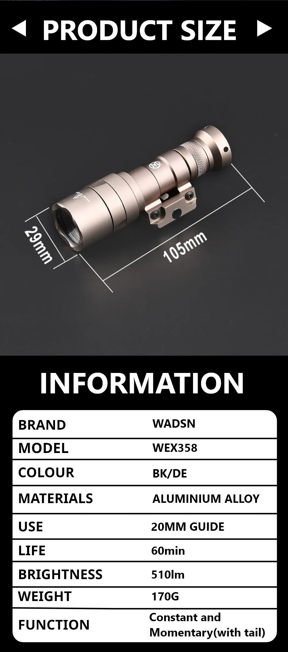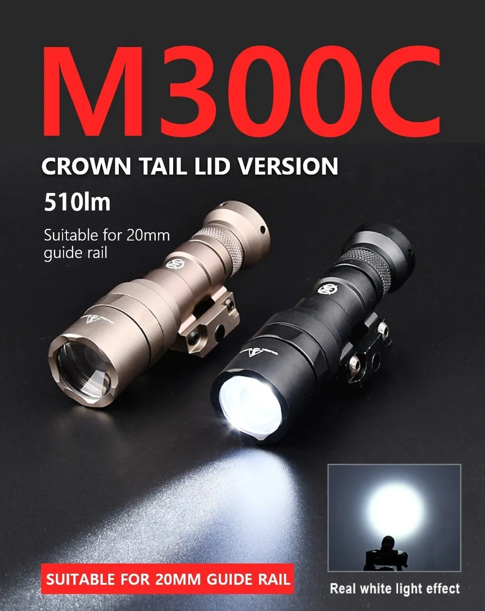 Linterna táctica Wadsn M300C M300 Mini foco LED Metal M300c 510 lúmenes potente caza al aire libre Scout Light Fit 20MM Rail