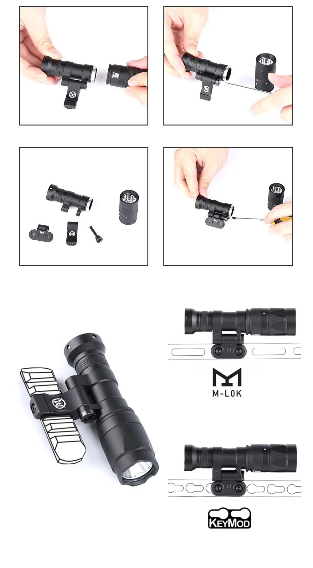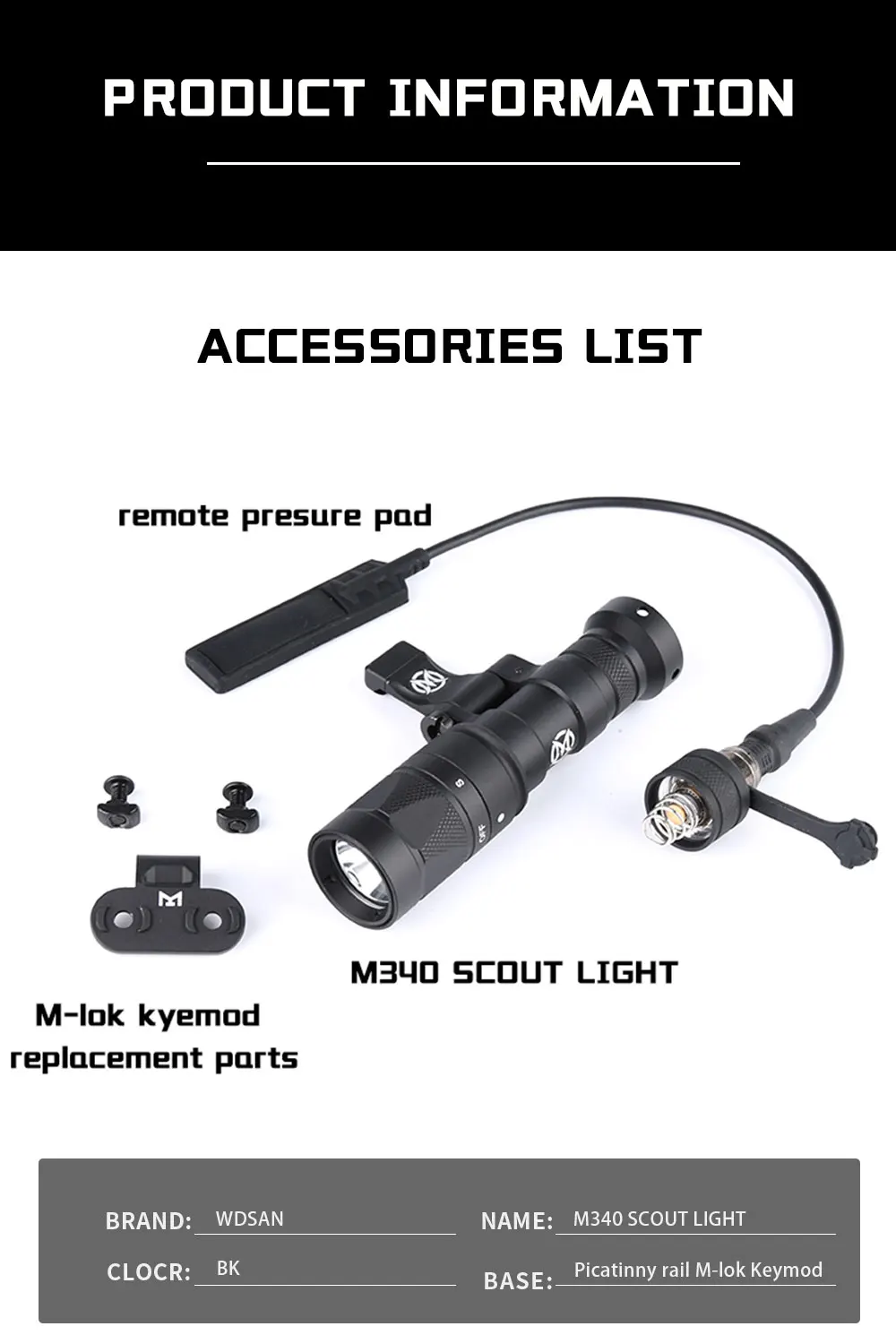 Wadsn-linterna táctica M340A, M340B, M340C, M340W, luz estroboscópica de explorador, lámpara de arma de caza, casco rápido, montaje de riel de arco Picatinny