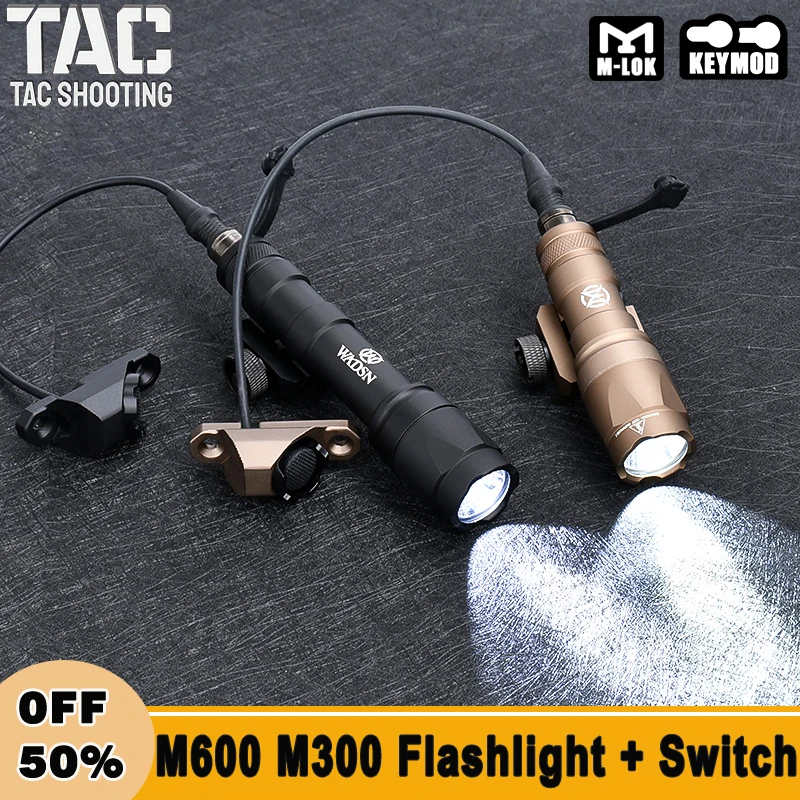 WADSN-linterna táctica M600 M300 para caza, luz LED para arma Airsoft con interruptor de presión de un solo botón, compatible con riel M-Lok Keymod