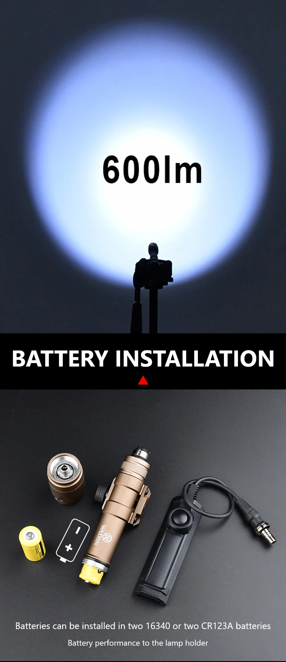 Wadsn-linterna táctica M600 M300A M600C, 400lm/600lm, luz LED blanca, ajuste de 20mm, Rail, arma de caza, accesorios Airsoft, interruptor