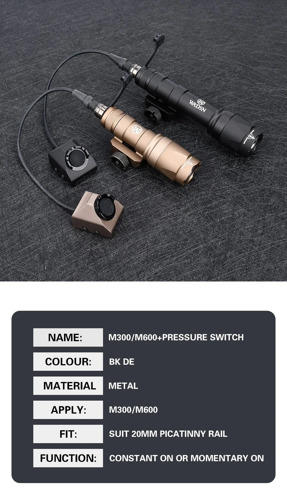 WADSN-linterna táctica M600 M600C M300 M300A, accesorio para arma Airsoft con botón caliente, interruptor remoto de presión, compatible con riel de 20mm