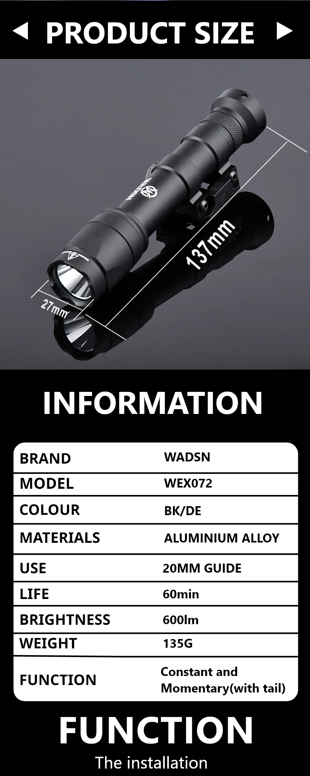 WADSN-linterna táctica M600 M600C de Metal para caza, luz LED blanca de explorador, 600 lúmenes, accesorios para pistola de aire, adecuada para riel de 20mm