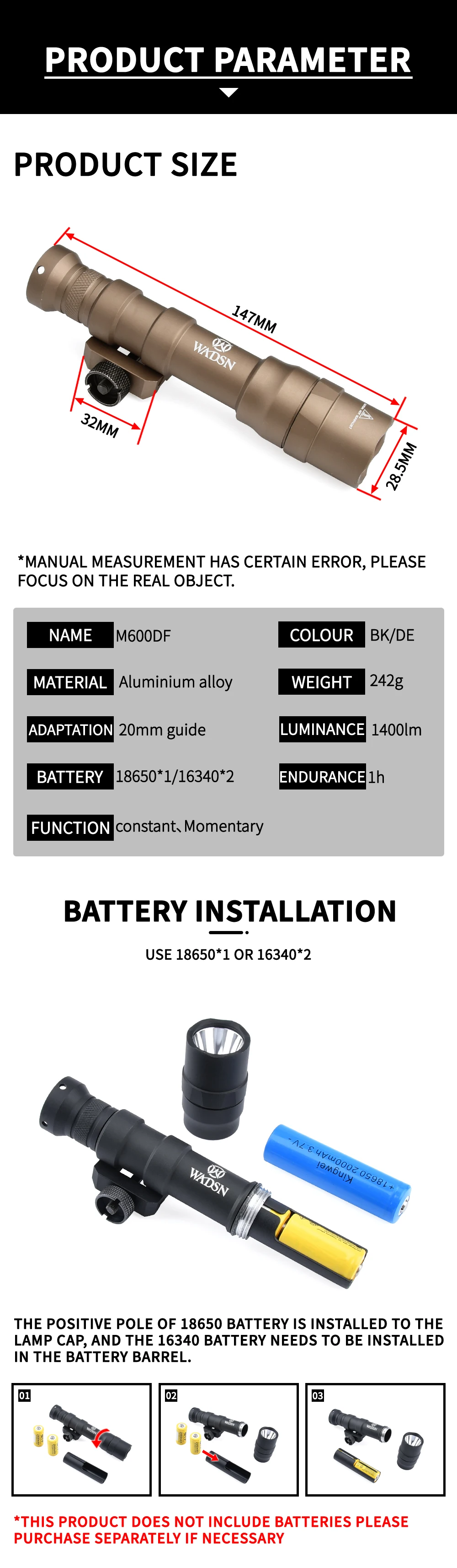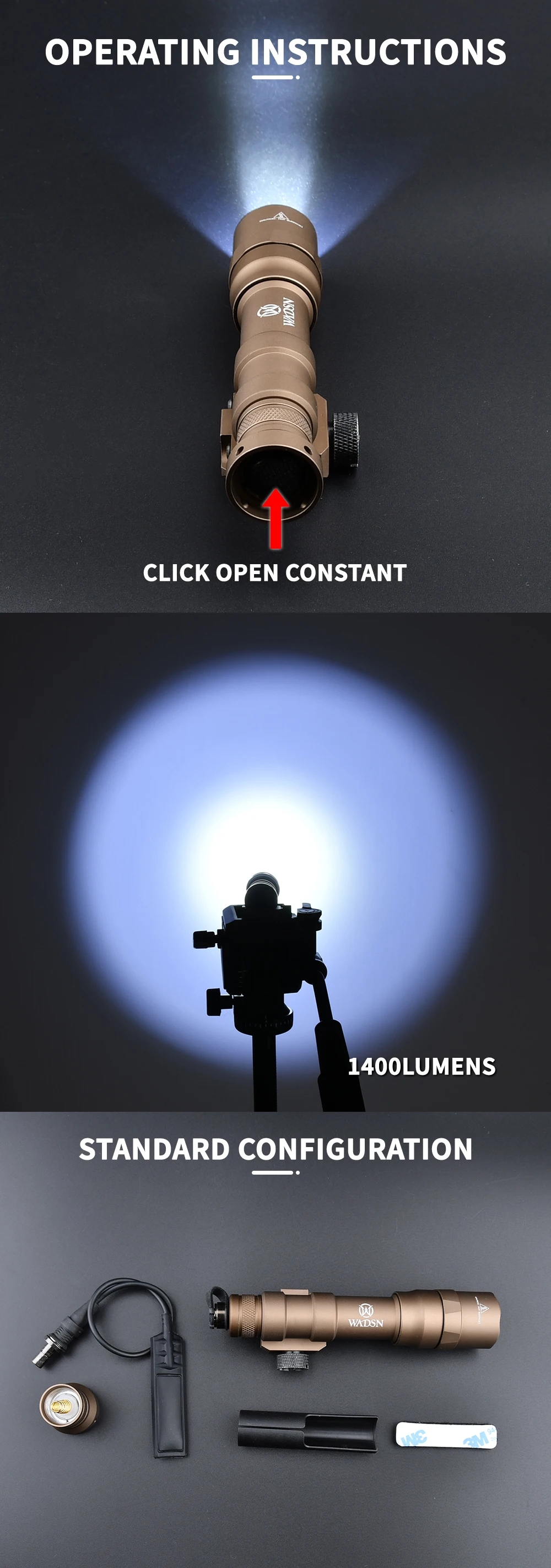 WADSN-linterna táctica M600 M600DF de alta potencia, 1400 lúmenes, luz exploradora de alto Lumen, lámpara de caza Airsoft apta para riel Picatinny de 20mm