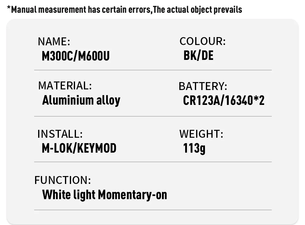 WADSN-linterna táctica M600B, M300C, M600U, m-lok Keymod, montaje Offset, Arma de riel, luz de explorador, M600, M300B, accesorios Airsoft