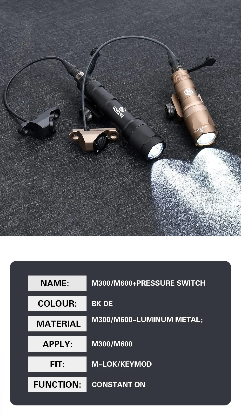 Wadsn Tactical M600C M300A Flashlight With Metal Hot Button Pressure Switch For Mlok Keymod Rail Momentary On Constant On Switch
