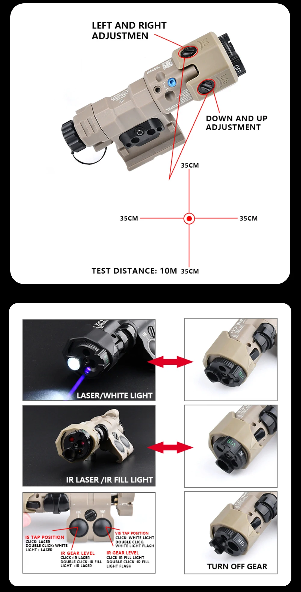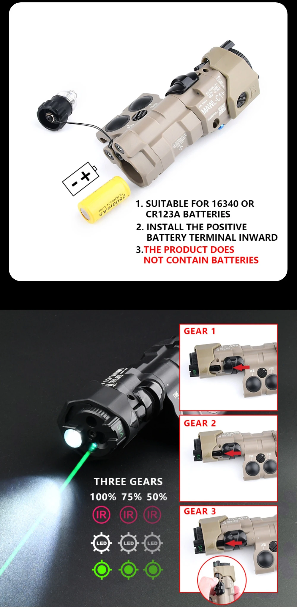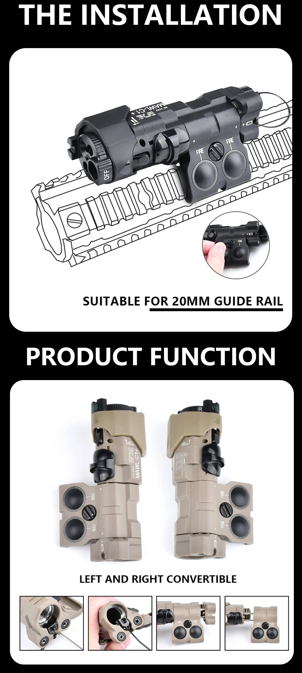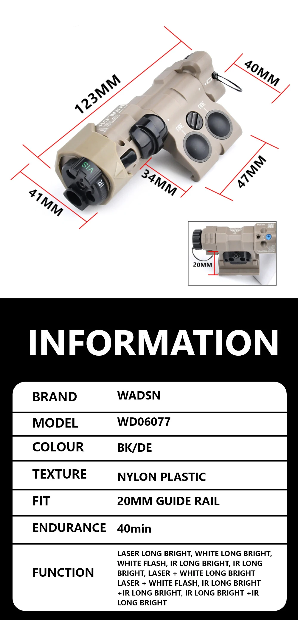 WADSN-linterna táctica MAWL C1 + nailon, plástico, rojo, verde, láser, infrarrojo IR, luz de explorador para riel Picatinny AR15 de 20mm