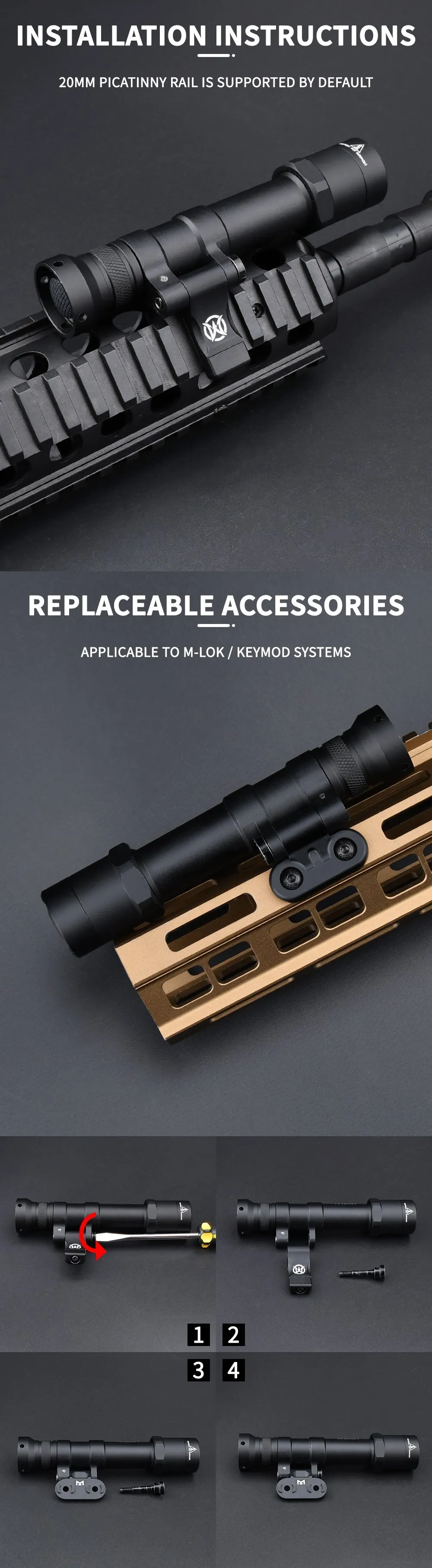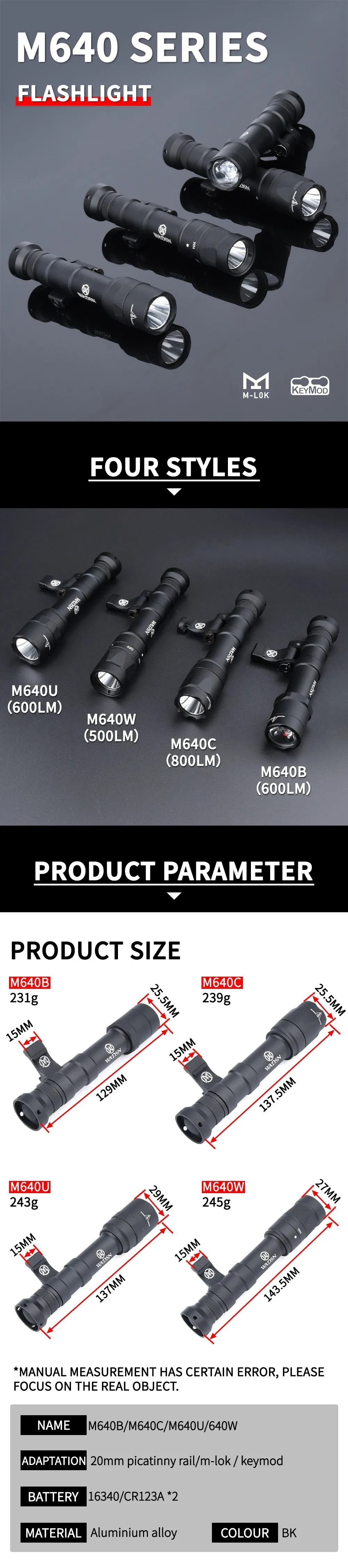 WADSN Metal M640 linterna táctica CNC M640B M640C M640U M640W al aire libre Airsoft caza Scout luz M640w foco estroboscópico
