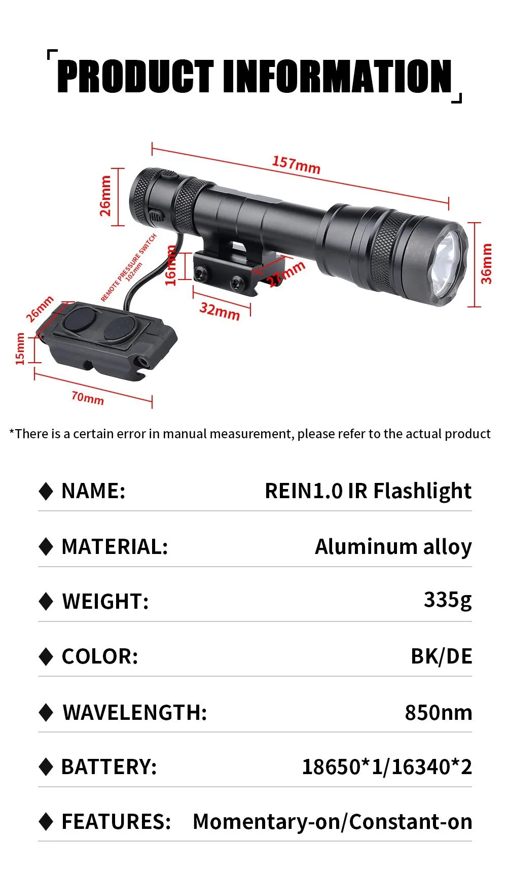 WADSN-linterna táctica de Metal con interruptor de presión, luz LED IR para arma de caza Airsoft, luz de explorador, riel Picatinny, 20mm, 1,0