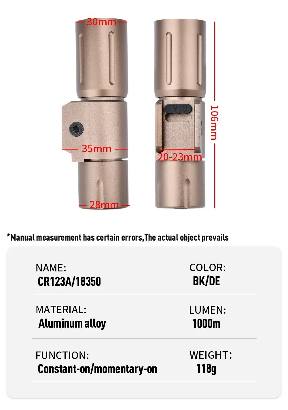 CR123A O 18350 (no incluido)