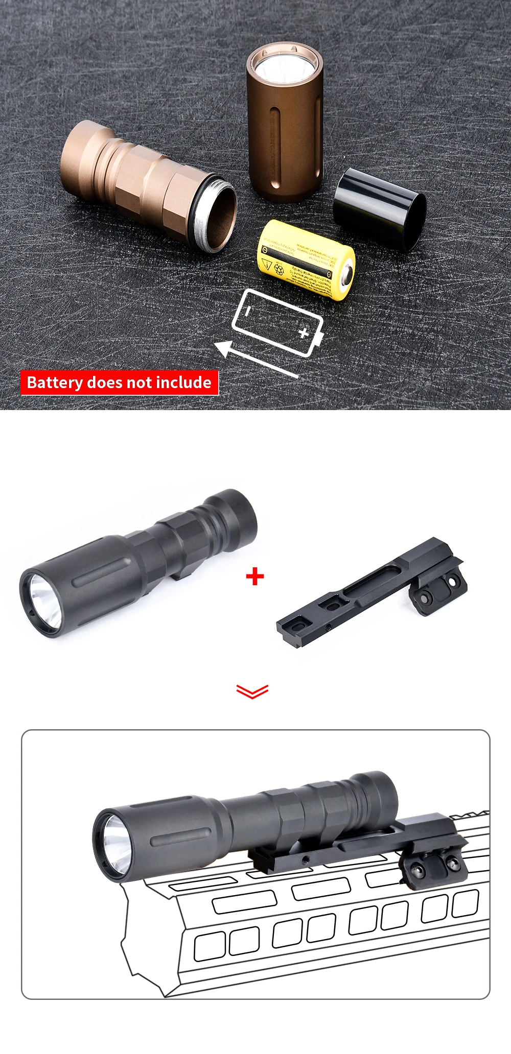Wadsn Metal PLHv2 18350 18650 Linterna táctica Mlok Keymod Rail Offset Mount Base de metal Caza de alta potencia Airsoft ScoutLight