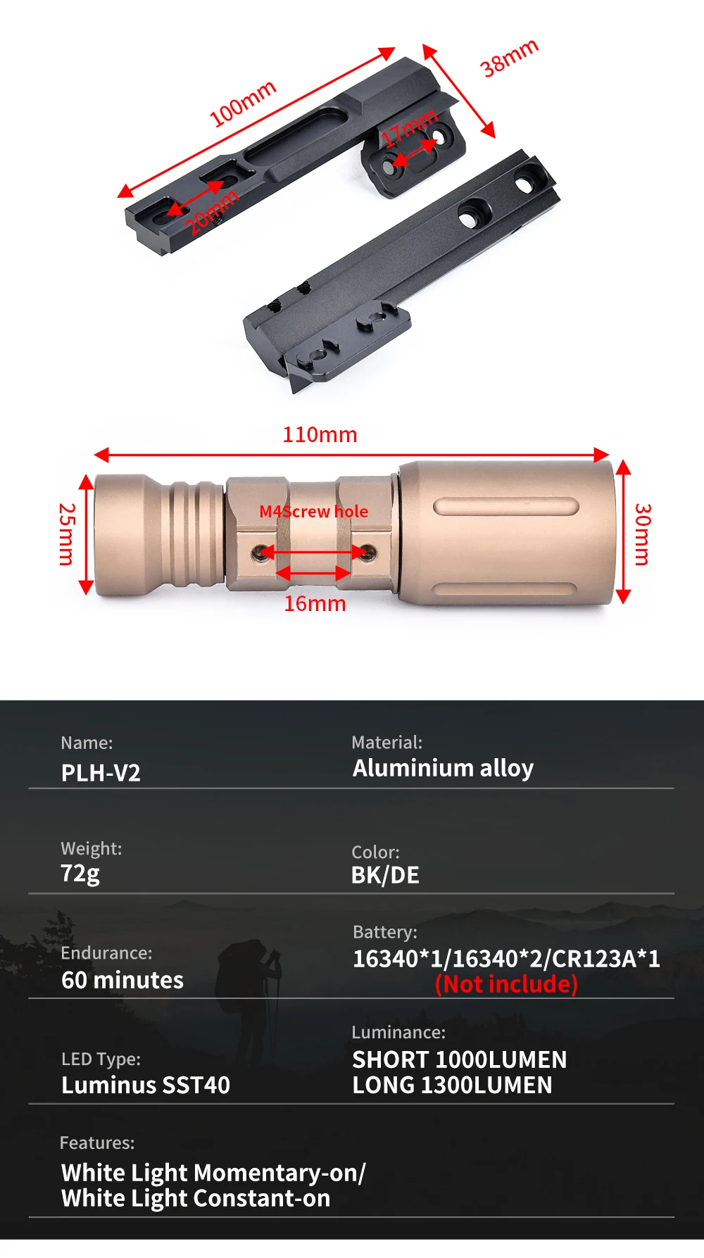 Nombre: Linterna PLHv2 + montaje de luz adaptable offset Keymod de