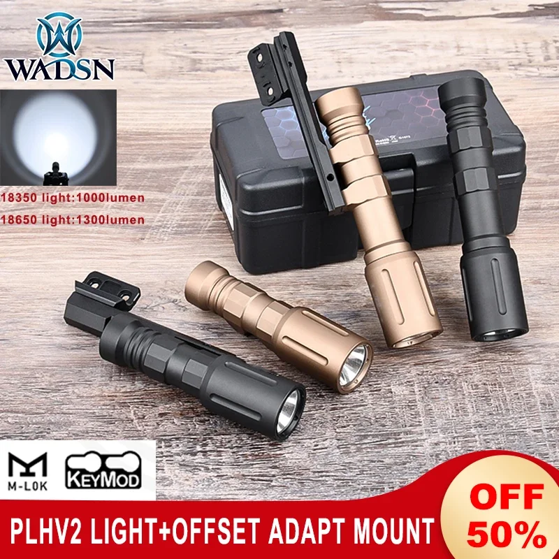 Wadsn Metal PLHv2 18350 18650 Linterna táctica Mlok Keymod Rail Offset Mount Base de metal Caza de alta potencia Airsoft ScoutLight