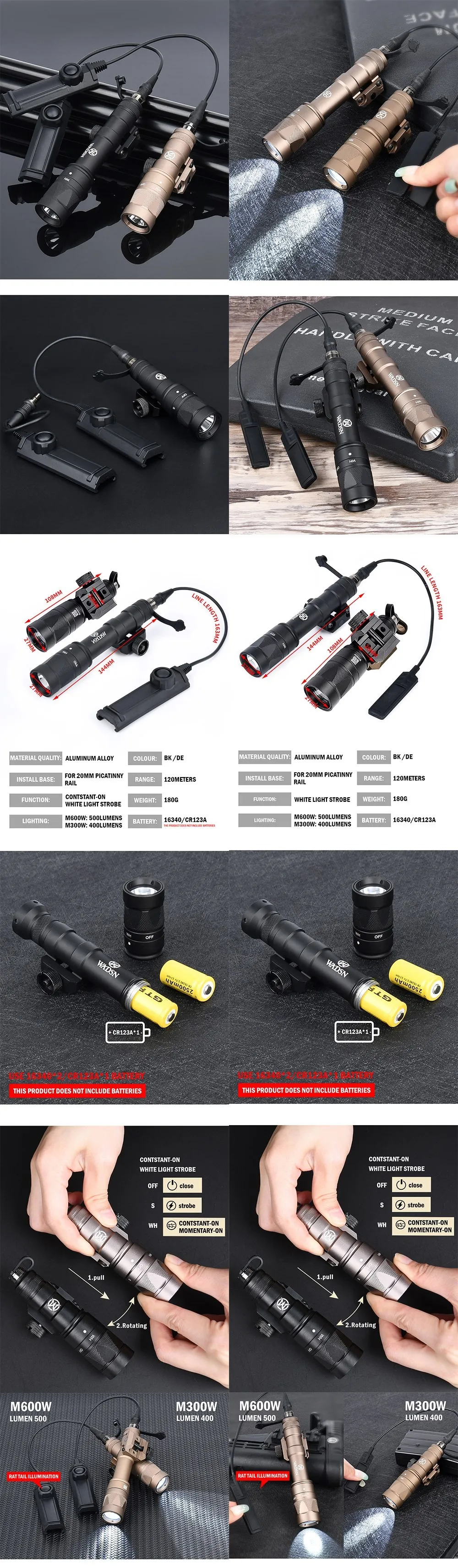 WADSN-linterna táctica potente para Rifle de explorador, luz Led estroboscópica para caza, riel Picatinny de 20mm, M600W, M600