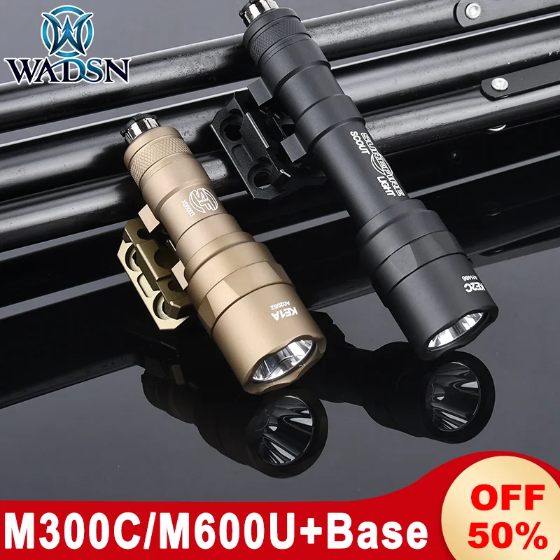 WADSN-linterna táctica SF M600, M600U, M300C, 400/600 lúmenes, luz blanca, Metal, M-LOK, Keymod, Base de montaje, compatible con lámpara de arma de riel de 20mm