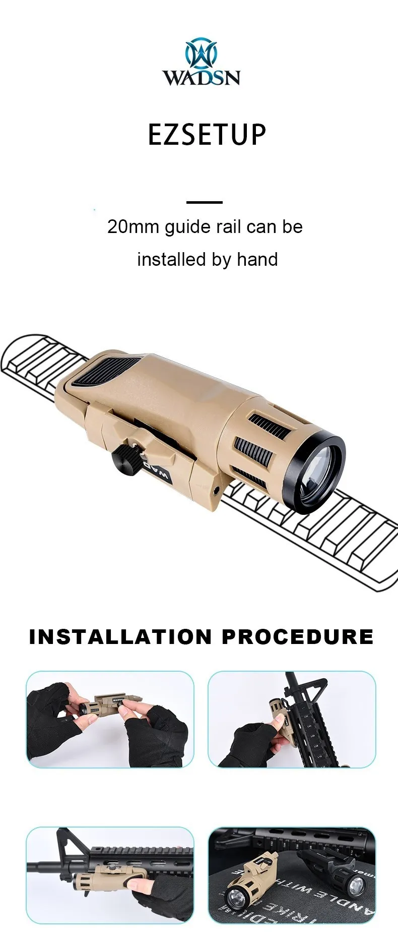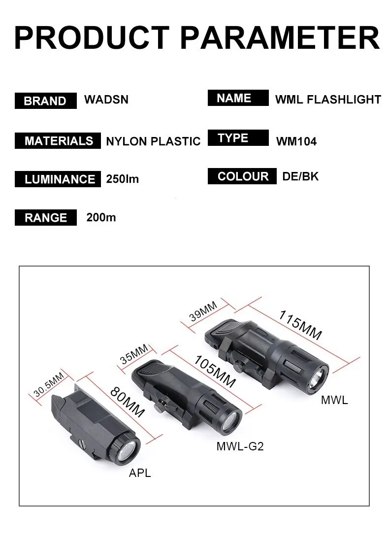 WADSN linterna táctica WML APL M3X Airsoft para arma, luz estroboscópica Scout, compatible con riel Picatinny de 20mm, WML, antorcha de caza