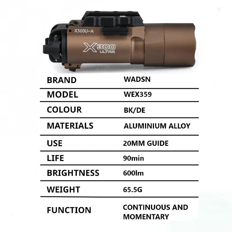 WADSN-linterna táctica X300 X300 Ultra XH35 X300V, luz LED estroboscópica, lámpara de montaje de aluminio, linterna colgante Airsoft X300UH-B