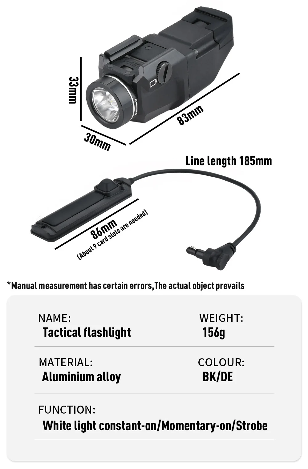 WADSN Linterna TR-7 X Luz de arma táctica compacta de 500 lúmenes, incluye interruptores de paleta alta y baja y kit de llaves Accesorios negros