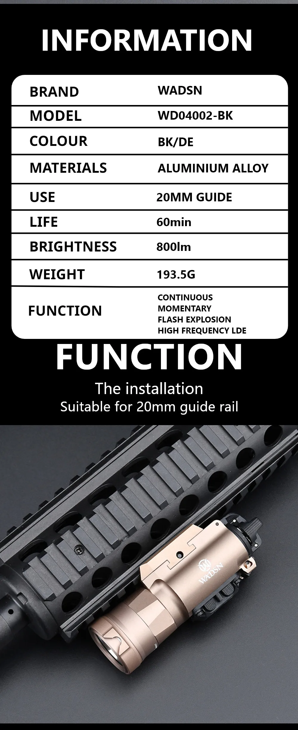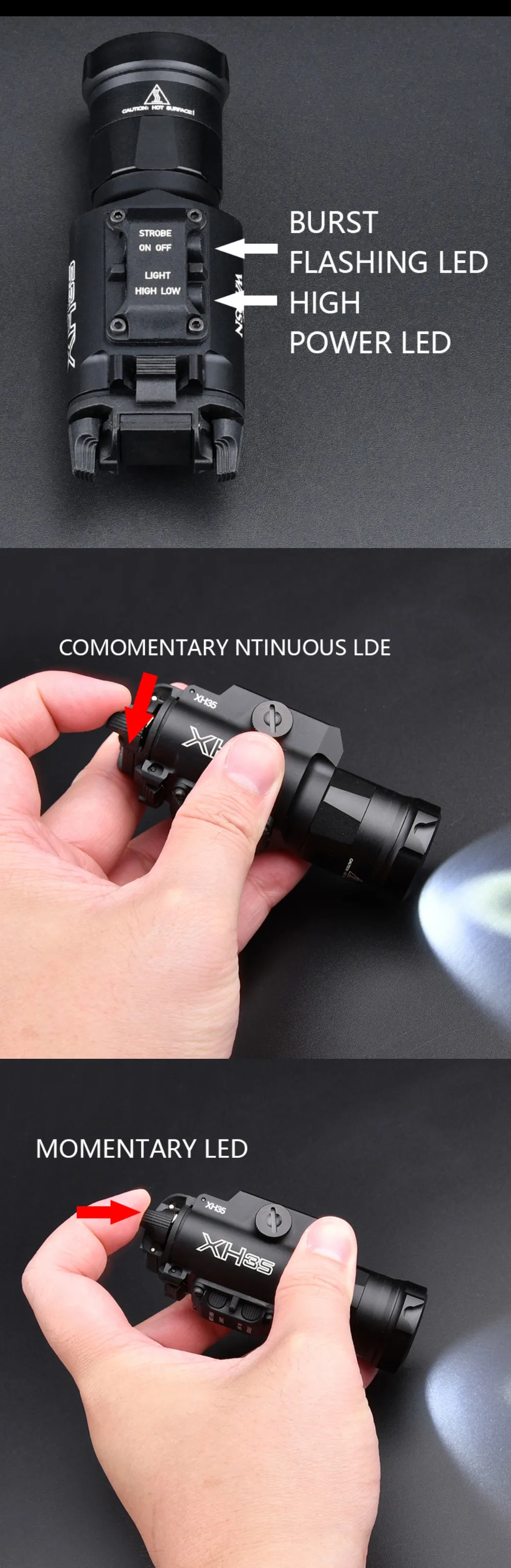 WADSN-linterna XH35 de 800 lúmenes, luz táctica para armas, lámpara de pistola estroboscópica de brillo LED blanco, ajuste de luz táctica X300