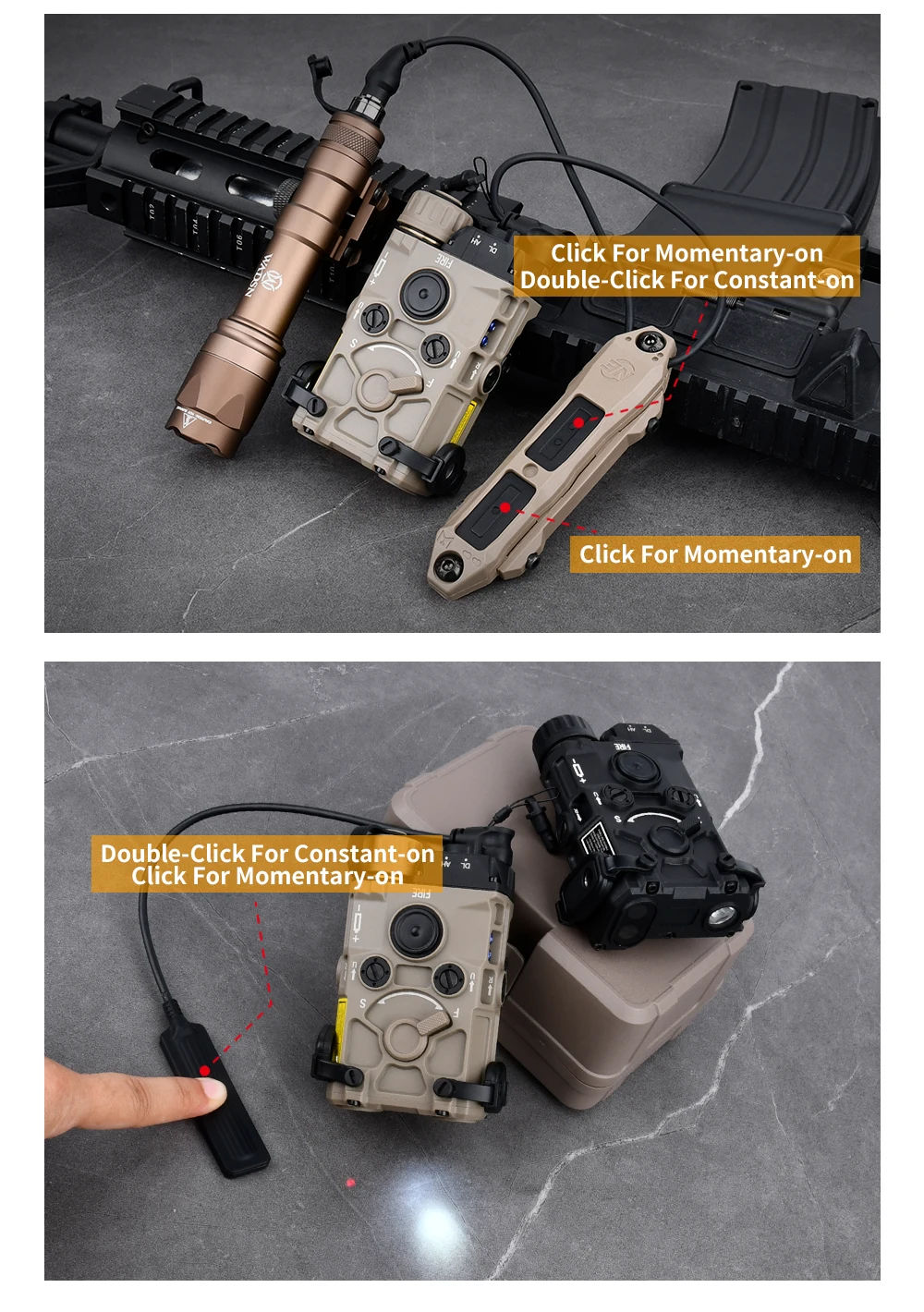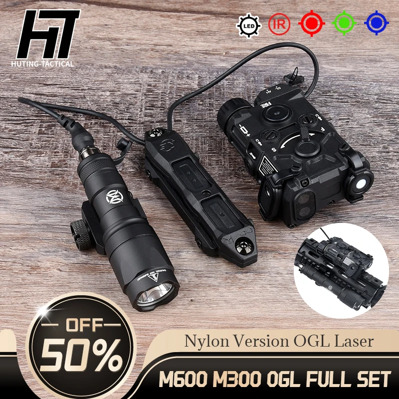 WADSN-luz estroboscópica LED blanca para caza, linterna láser de plástico de nailon OGL IR, rojo, verde, azul, M300, M600, con interruptor de presión