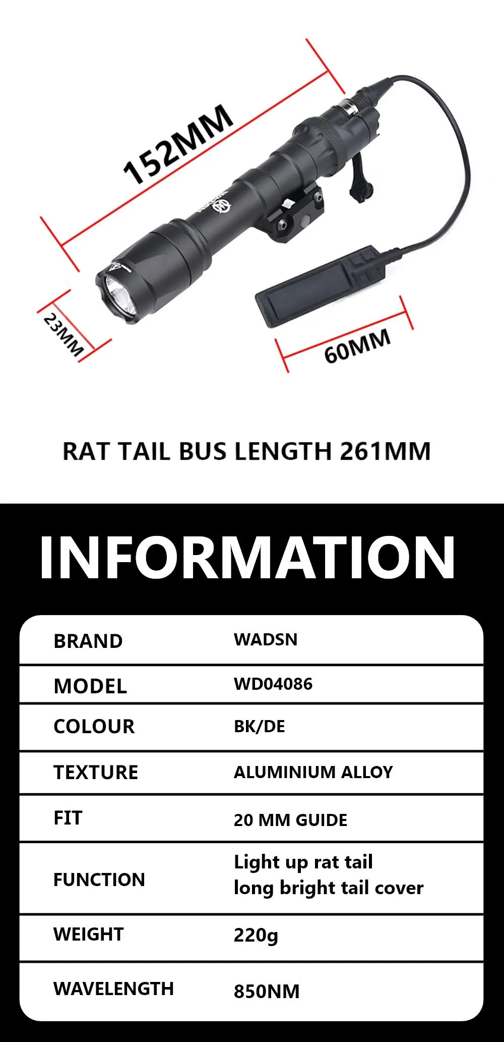 WADSN-luz exploradora táctica M600 M600C IR LED, interruptor de presión instantáneo, pistola de aire, accesorio para arma, compatible con riel Picatinny de 20mm