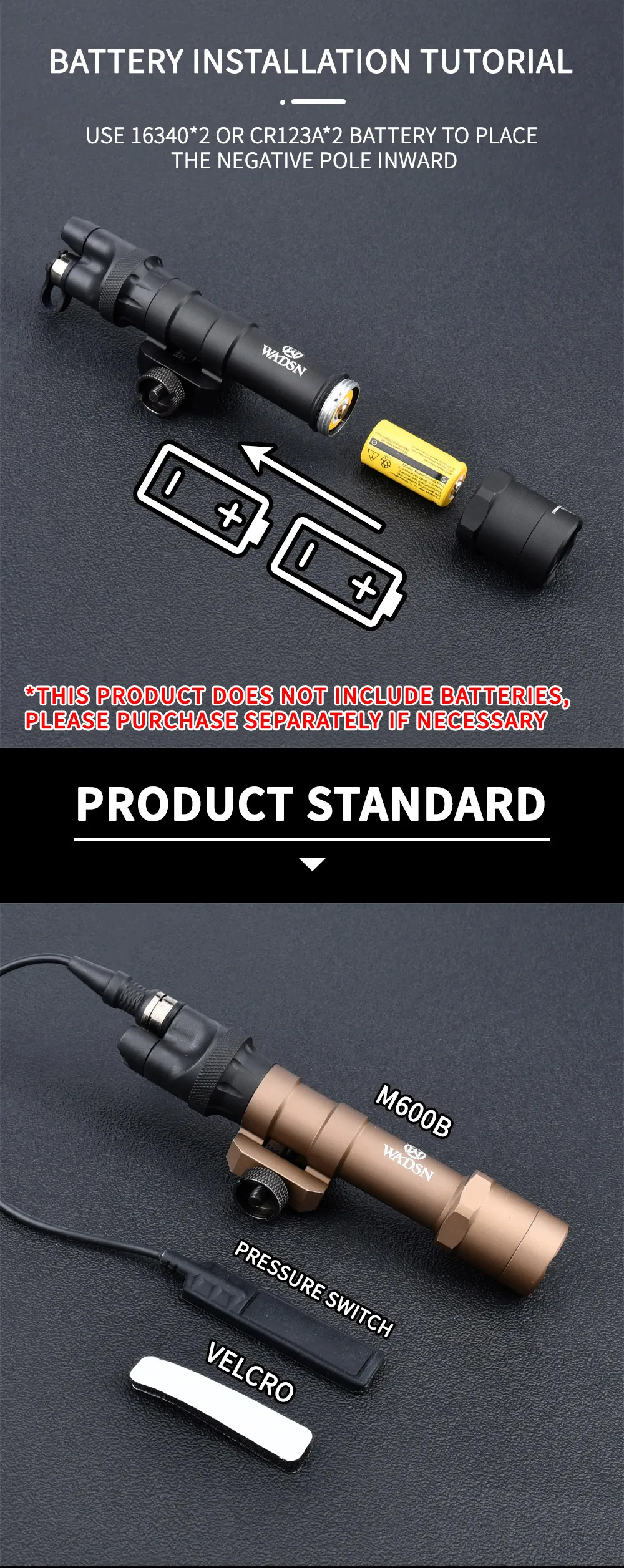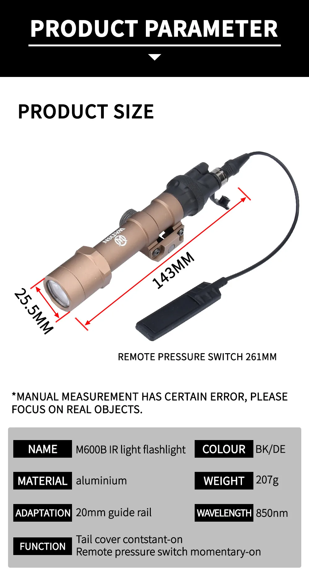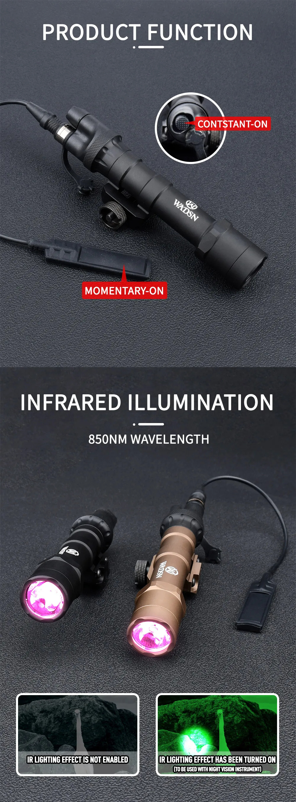 Metal Wadsn M600B IR Led Light M600 Linterna táctica Luz 500 Lumen Airsoft Caza al aire libre LED Scout Light Momentáneo en