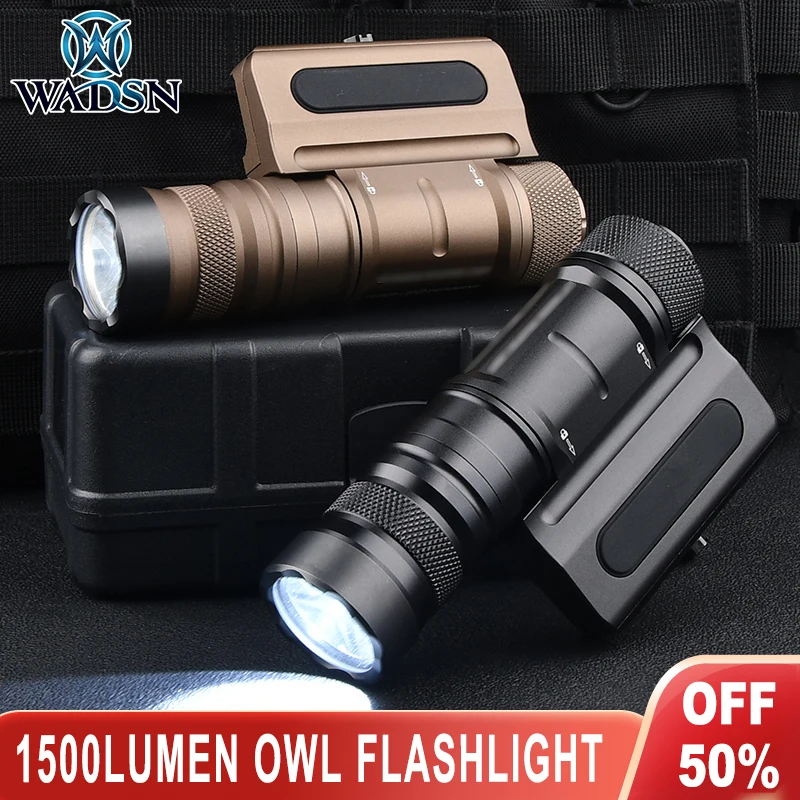 WADSN-luz táctica optimizada para armas, 1500 lúmenes, luz blanca, Metal, búho, linterna, caza, Airsoft, luz LED Scout, ajuste de riel de 20mm