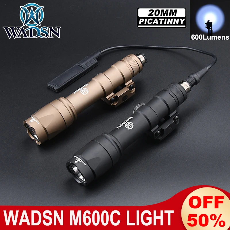 Juego de linternas Wadsn M600C, luz de explorador de caza táctica de alta potencia de 600 lúmenes con interruptor de presión momentáneo remoto, compatible con riel de 20 MM