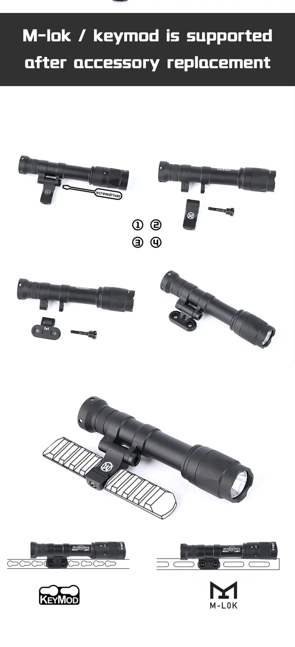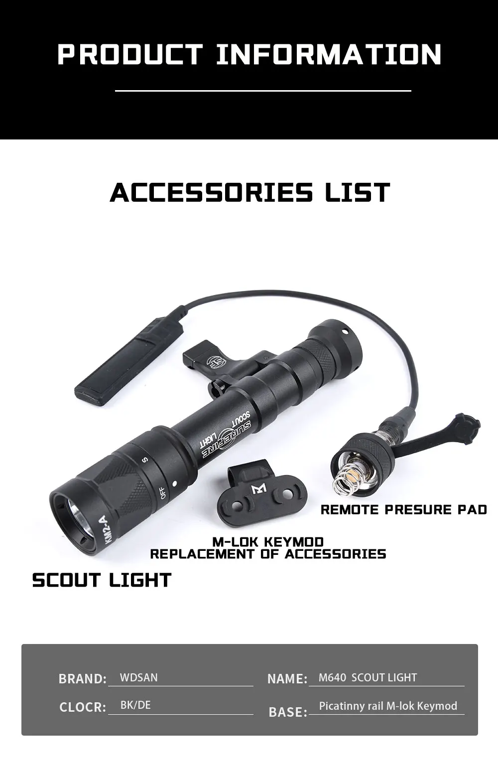 WADSN M640 linterna táctica Surefir AR15 Rifle Airsoft Scout luz estroboscópica Mlok Keymod Pictinny 20mm lámpara de caza con riel